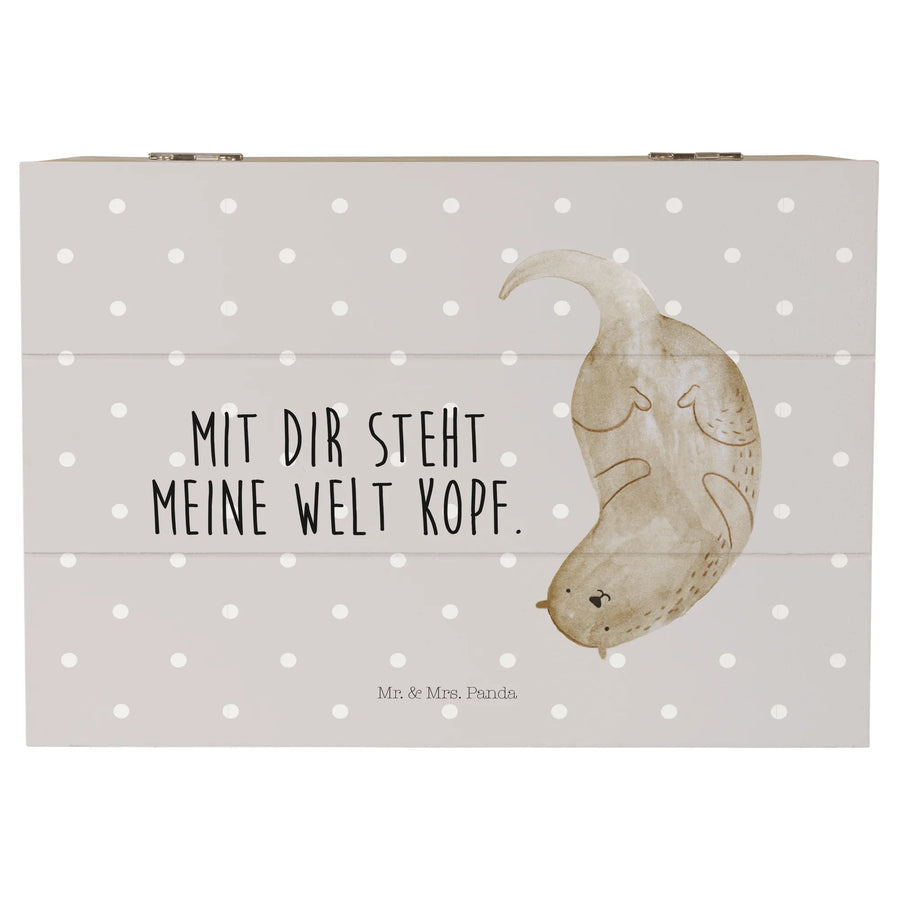 Eine wunderschöne Holzkiste von Mr. & Mrs. Panda – verziert mit dem liebevollen Otter-Motiv „Otter kopfüber“ und dem Spruch „Mit Dir steht meine Welt Kopf.“ Diese dekorative Erinnerungskiste ist mehr als eine Aufbewahrungsbox: Sie ist ein Herzstück für all deine wertvollen Erinnerungen.