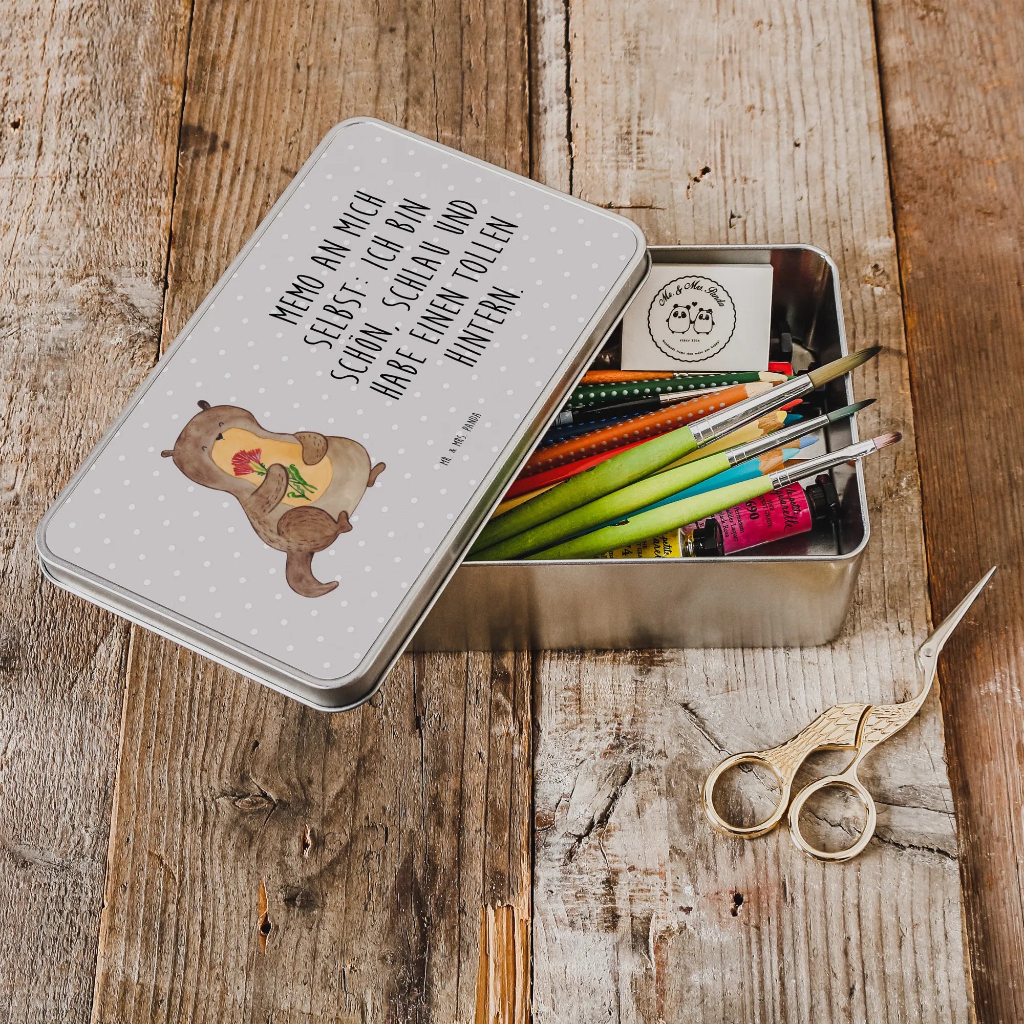 Metalldose rechteckig Otter Blumenstrauß – Mr. & Mrs. Panda