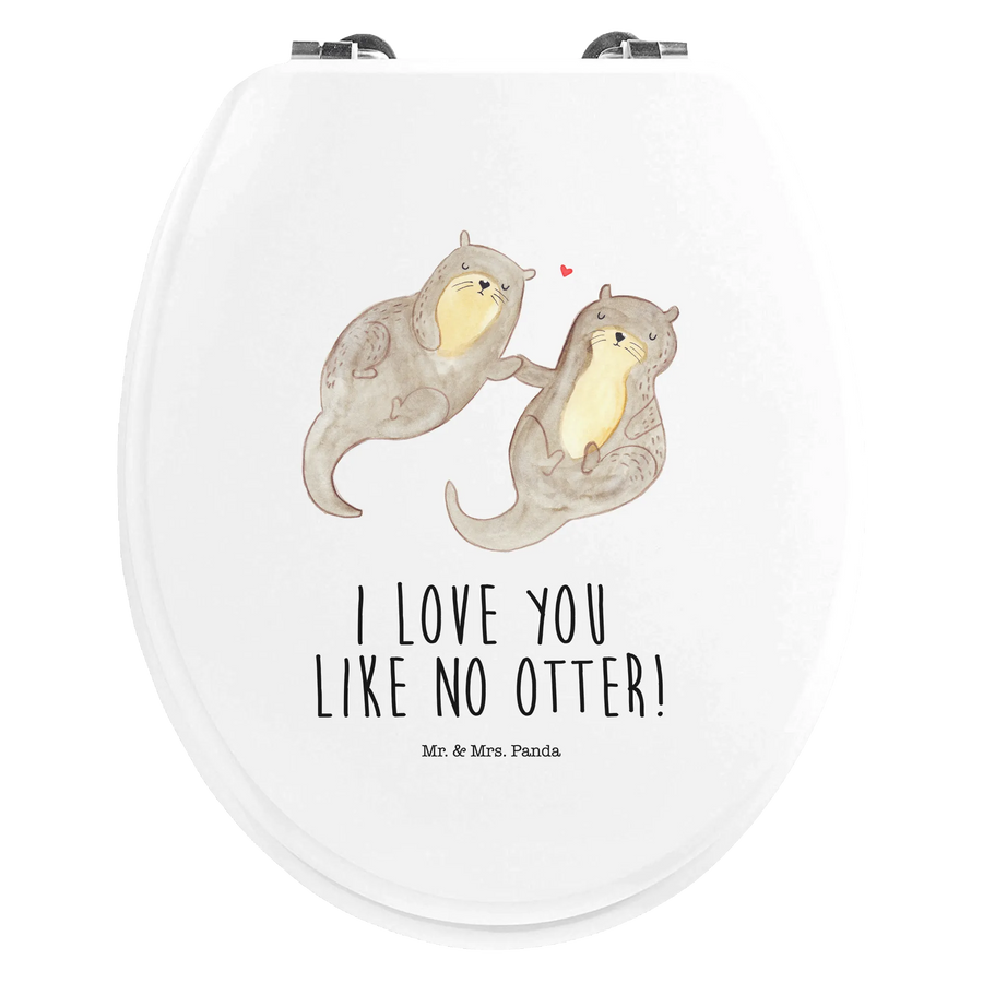 Der Motiv WC Sitz "Otter händchenhaltend" aus der Otter-Kollektion von Mr. & Mrs. Panda ist das perfekte Geschenk für alle Otter-Fans und Liebhaber niedlicher Motive. Mit seiner bezaubernden Darstellung von zwei verliebten Ottern, die Händchen halten und glücklich auf dem Rücken schwimmen, zaubert er ein Lächeln in jedes Badezimmer.