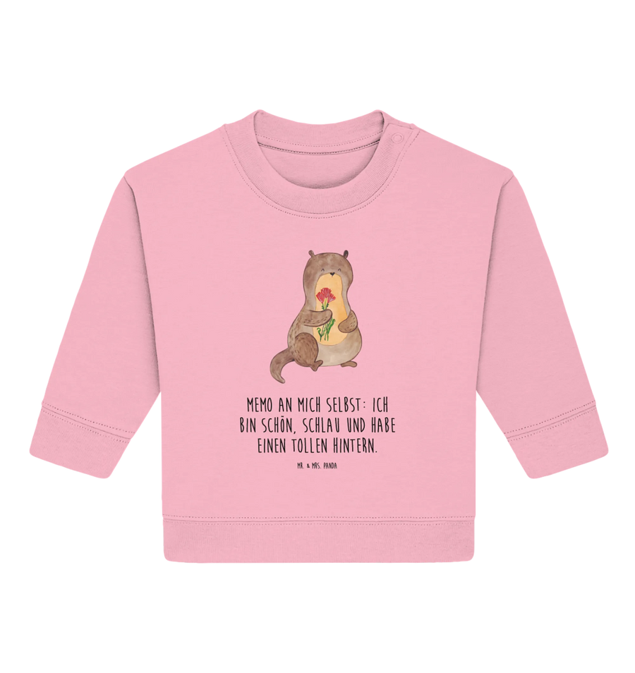Organic Baby Pullover Otter Blumenstrauß - 6. - 12. Monat - mit Spruch - Cotton Pink