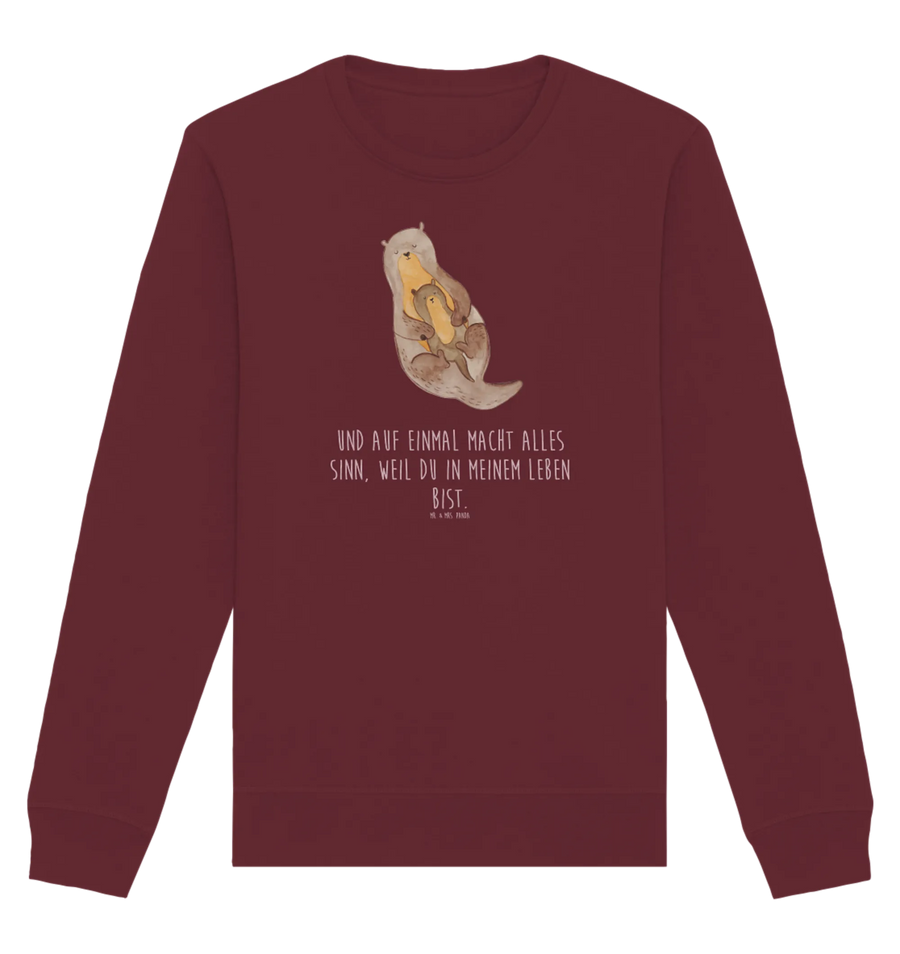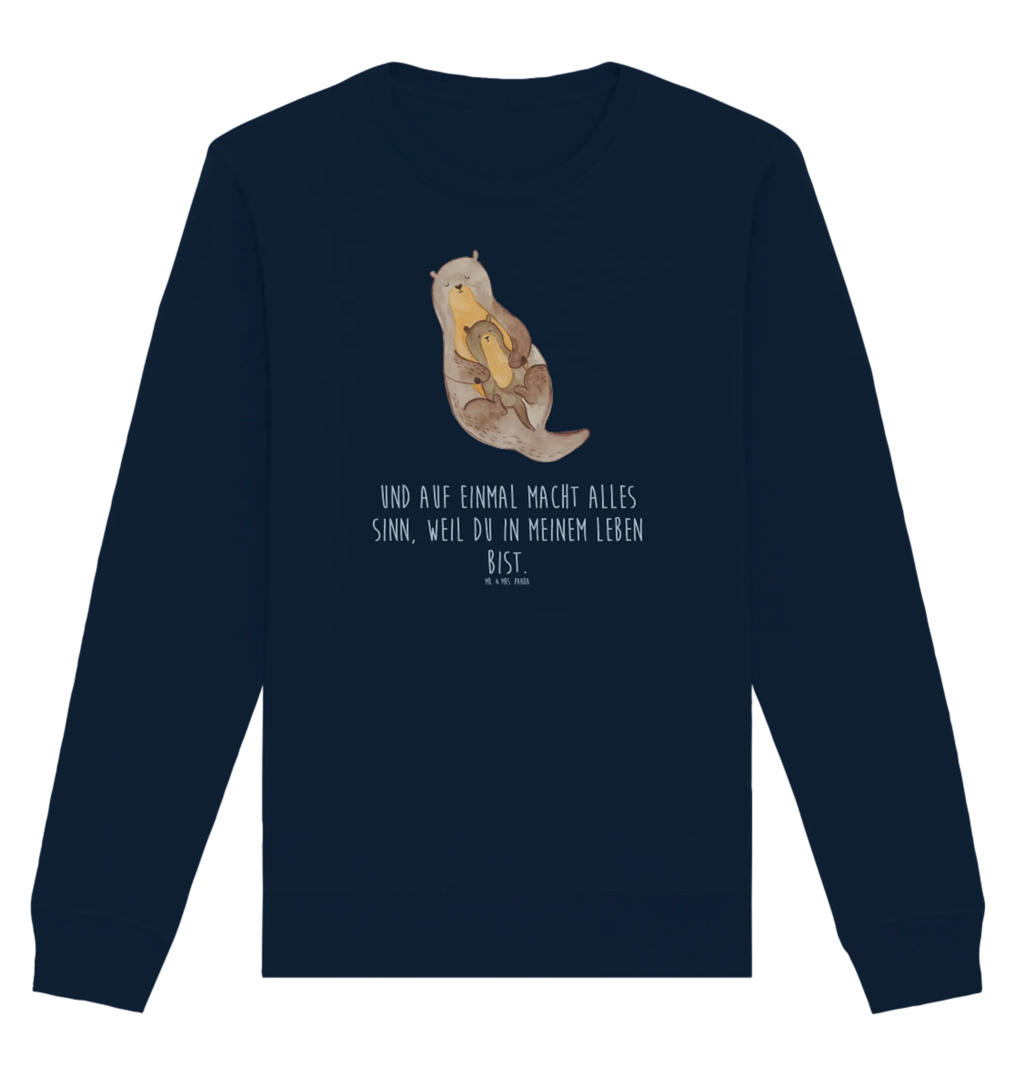 Mr. & Mrs. Panda Organic Pullover „Otter mit Kind“ – ein liebevolles Statement für alle, die Mode, Nachhaltigkeit und Herz vereinen möchten. Das zarte Motiv zeigt einen kleinen Otter, der sich sicher an seinen Elternteil schmiegt, begleitet vom bewegenden Spruch: „Und auf einmal macht alles Sinn, weil du in meinem Leben bist.“ Dieses Design aus der Otter - Kollektion macht den Pullover zur perfekten Geschenkidee für frischgebackene Eltern, zum Muttertag, zum Geburtstag oder einfach als liebevolle Überraschung für deinen Lieblingsmenschen.
