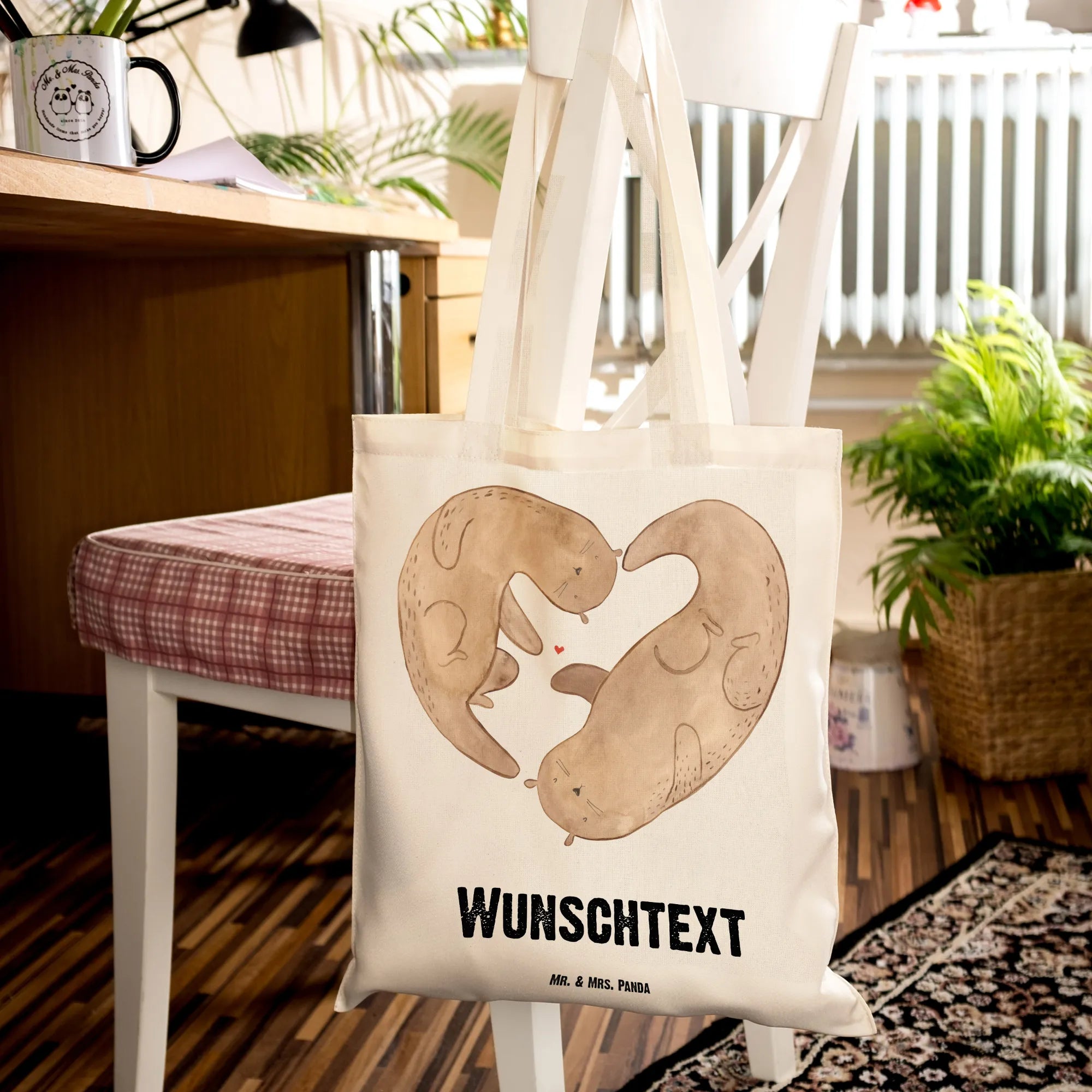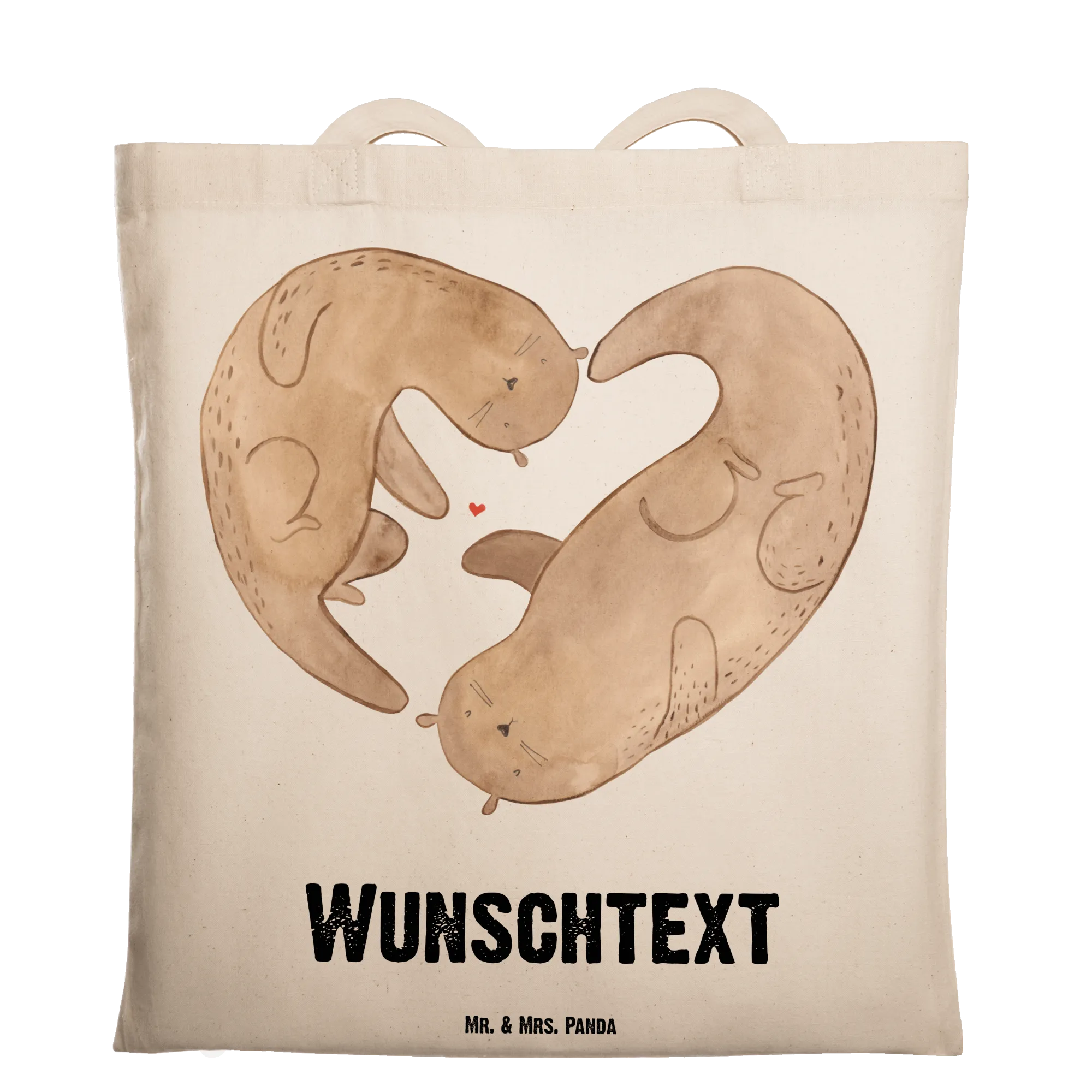 Entdecke die perfekte, personalisierte Tragetasche von Mr. & Mrs. Panda. Diese bezaubernde Tasche zeigt einen liebevollen Otter, der ein Herz in seinen Armen hält, und verkörpert damit die Botschaft: "You are my otter half." Die Tasche eignet sich hervorragend als Geschenk für Deine bessere Hälfte oder für Freunde, die Du einfach liebst.