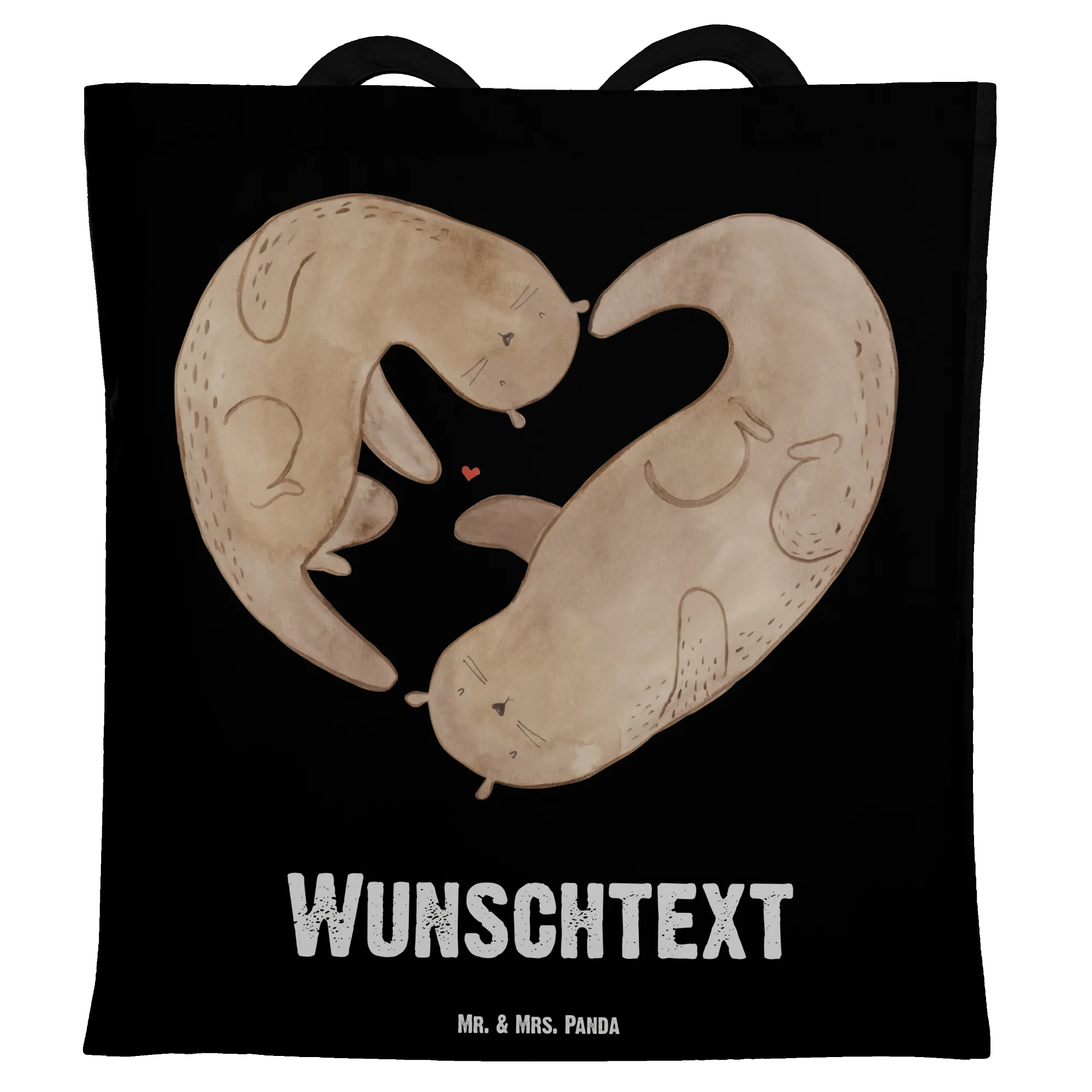 Personalisierte Tragetasche Otter Herz - Schwarz