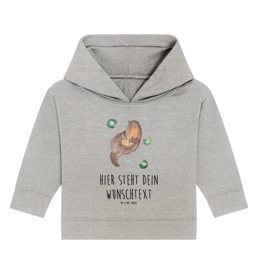 Personalisierter Baby Hoodie Otter Seerose - 12. - 18. Monat - Heather Grey