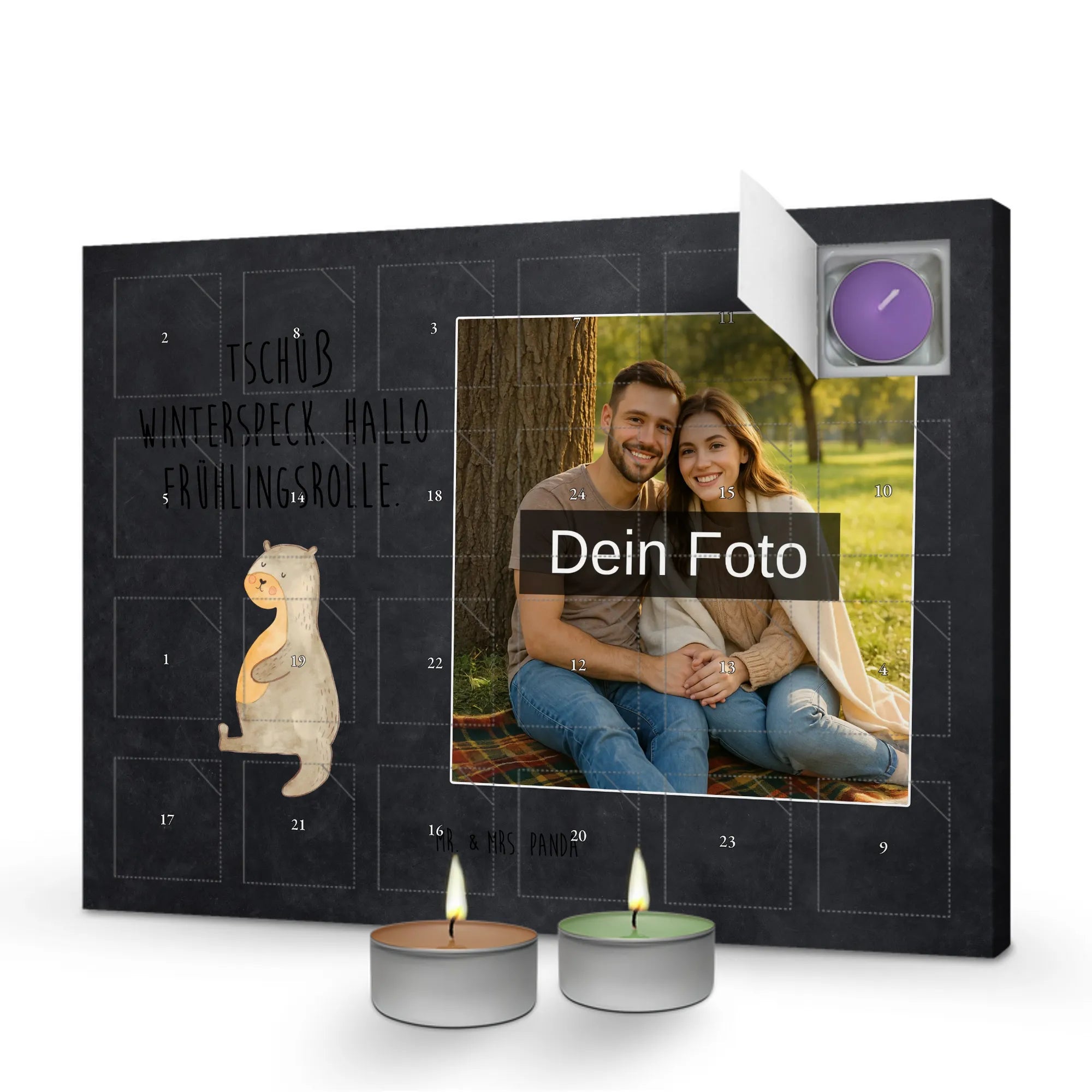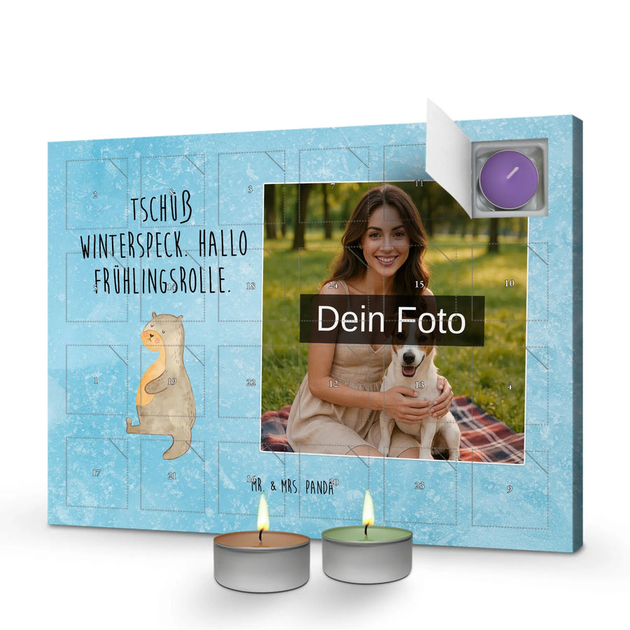 Personalisierter Duftkerzen Foto Adventskalender Otter Bauch - Eisblau