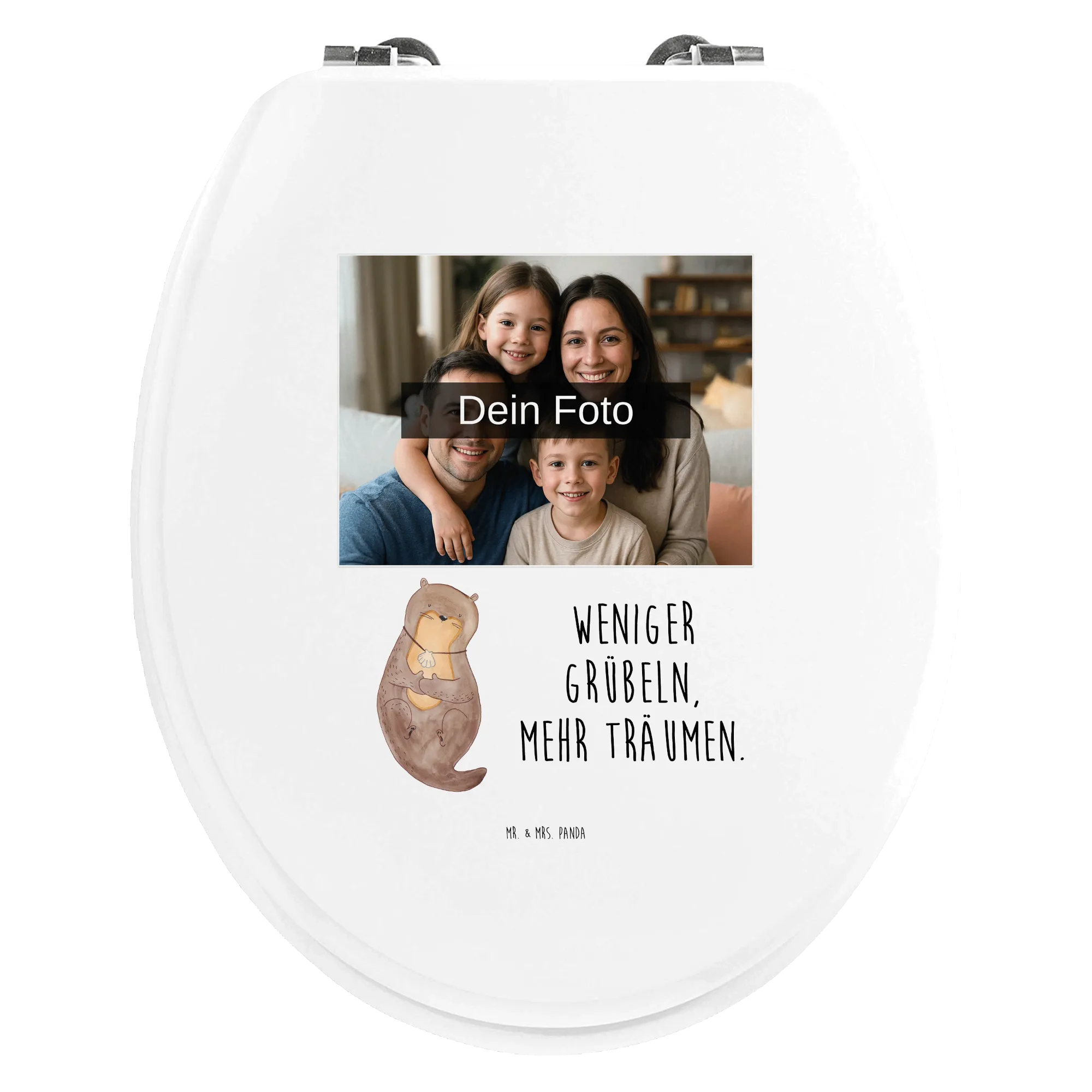 Personalisierter Foto WC Sitz Motiv Otter Muschel - Hartfaser Holzkern Weiß