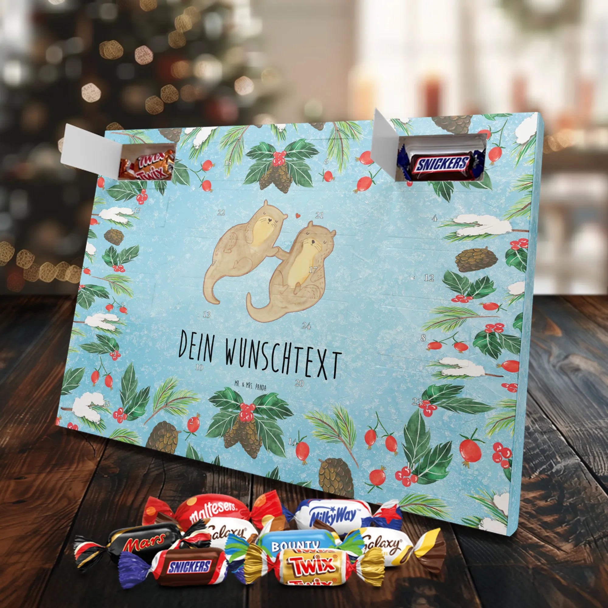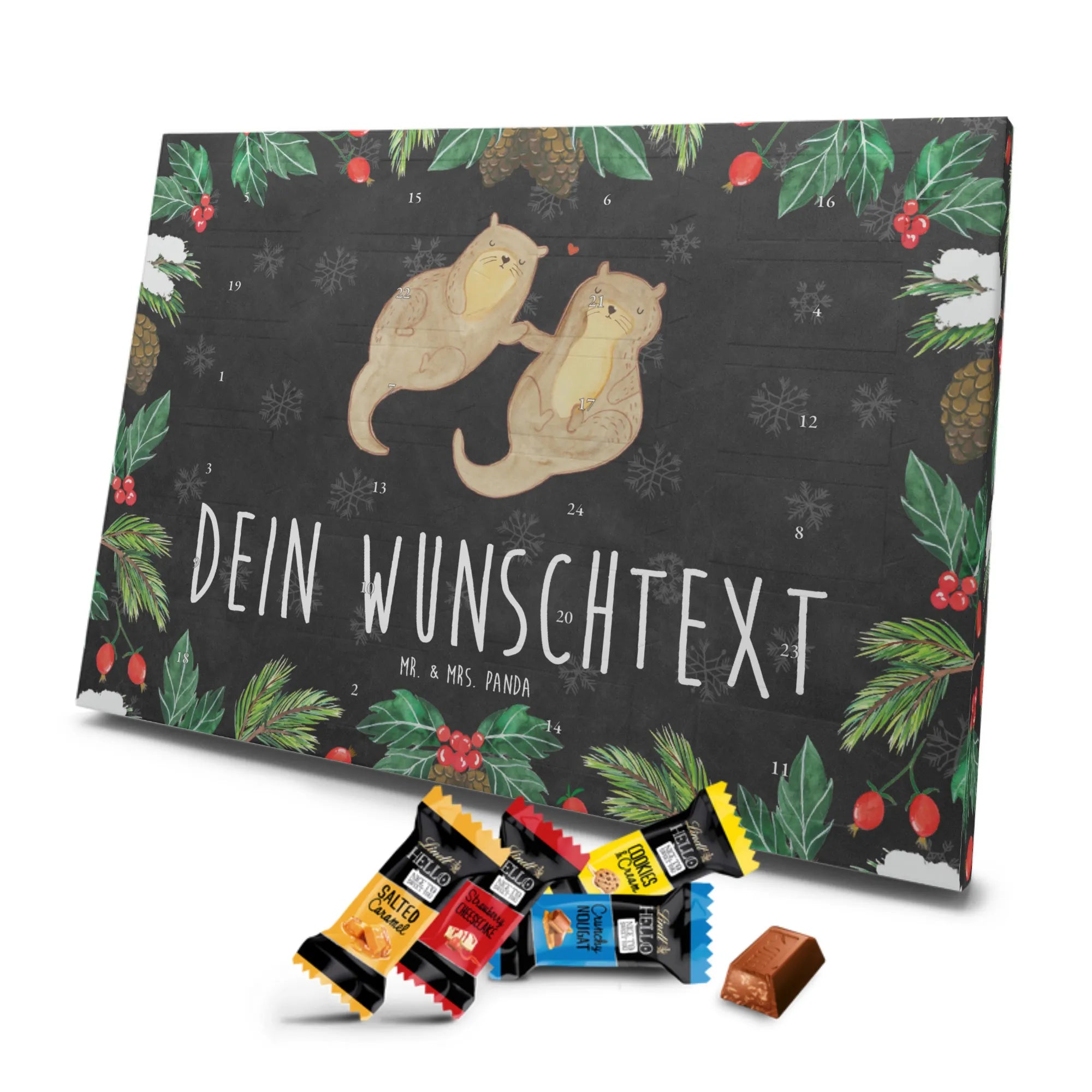 Verschenke Vorfreude, Persönlichkeit und süße Genussmomente – mit dem Personalisierter Schoko Adventskalender Otter händchenhaltend von Mr. & Mrs. Panda. 🦦❤️