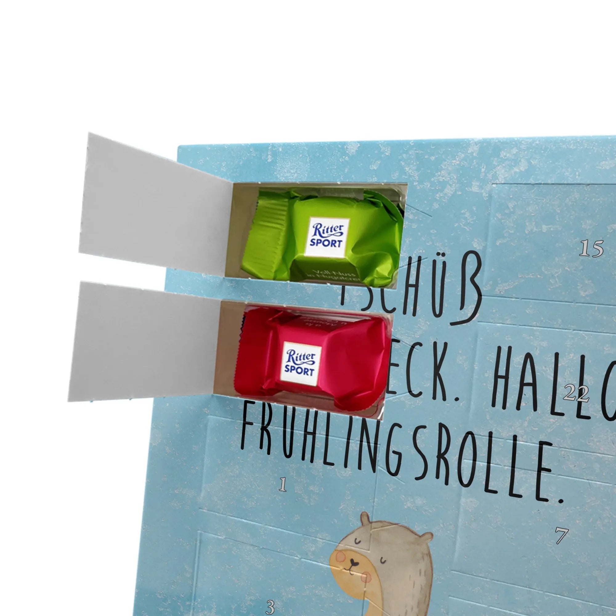 Personalisierter Schoko Foto Adventskalender Otter Bauch - Ritter Sport - Eisblau