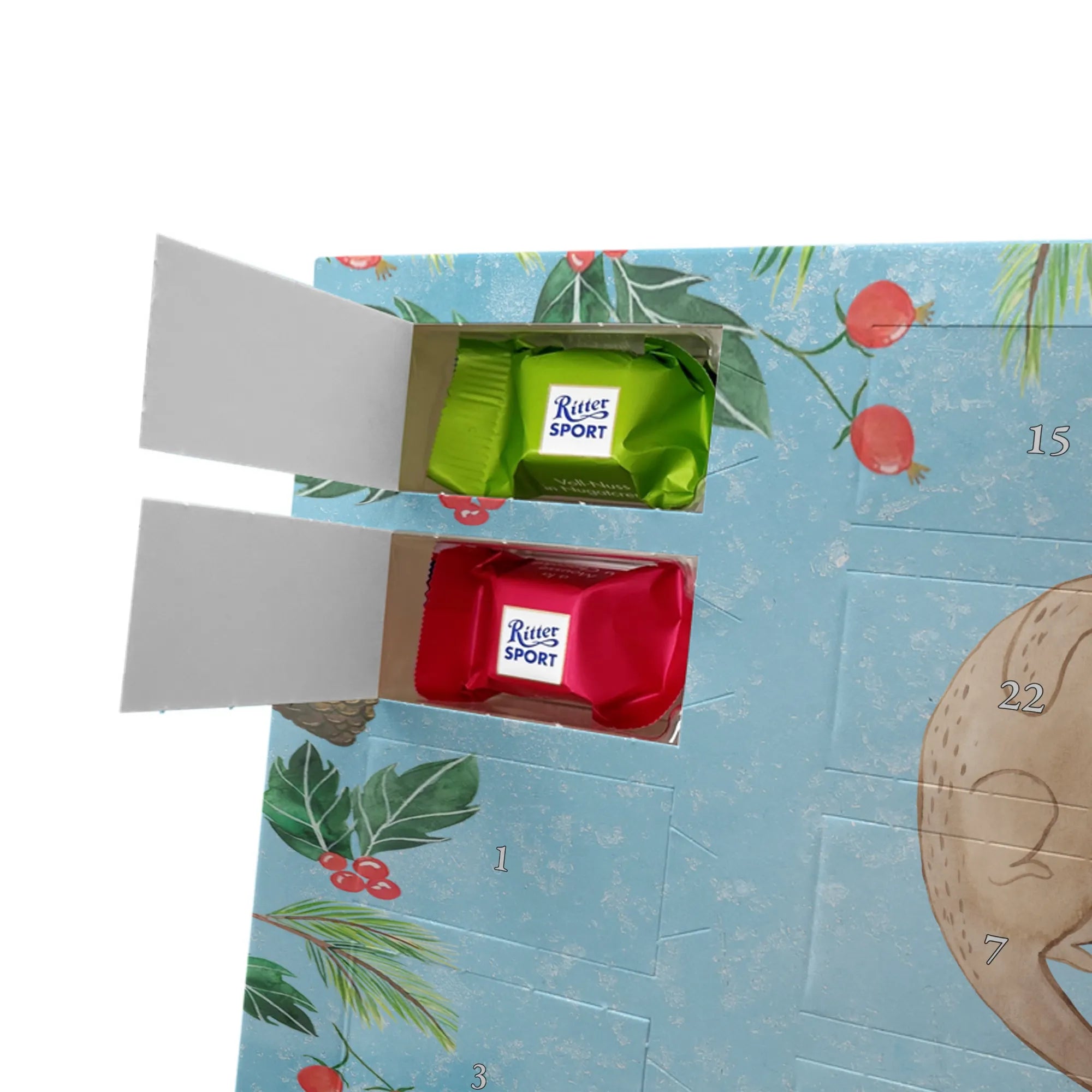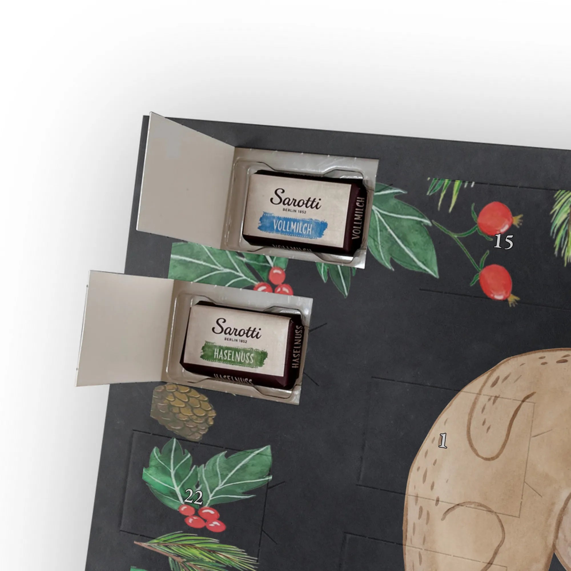 Adventskalender Schokolade von Mr. & Mrs. Panda – eine liebevolle Kombination aus hübschem Design und süßem Inhalt. Der Kalender ist bedruckt mit wunderschönen Motiven & Sprüchen von Mr. & Mrs. Panda und besticht durch brillante Druckqualität mit seidenmatter Oberflächenveredelung. Die Seitenflächen sind ebenfalls bedruckt, wodurch der Kalender rundum ein Hingucker ist. Er ist nicht personalisierbar. Maße: 325 mm x 225 mm x 27 mm. Besonders praktisch: Du kannst ihn sowohl aufgehängt als auch aufgestellt nutzen, je nachdem, wo er bei dir am schönsten wirkt. Gefüllt ist der Kalender mit Ritter Sport Schokowürfeln in verführerischen Sorten – Mousse au Chocolat, Schoko Crisp, Voll-Nuss in Nougatcreme, Karamell Duo, Joghurt und Erdbeer-Joghurt. Wichtiger Hinweis: Es handelt sich um einen Kalender gefüllt mit Ritter Sport Schokolade, nicht um einen Kalender der Marke Ritter Sport. Schenke deinen Liebsten oder dir selbst tägliche Schokoglücksmomente mit diesem charmanten Adventskalender.