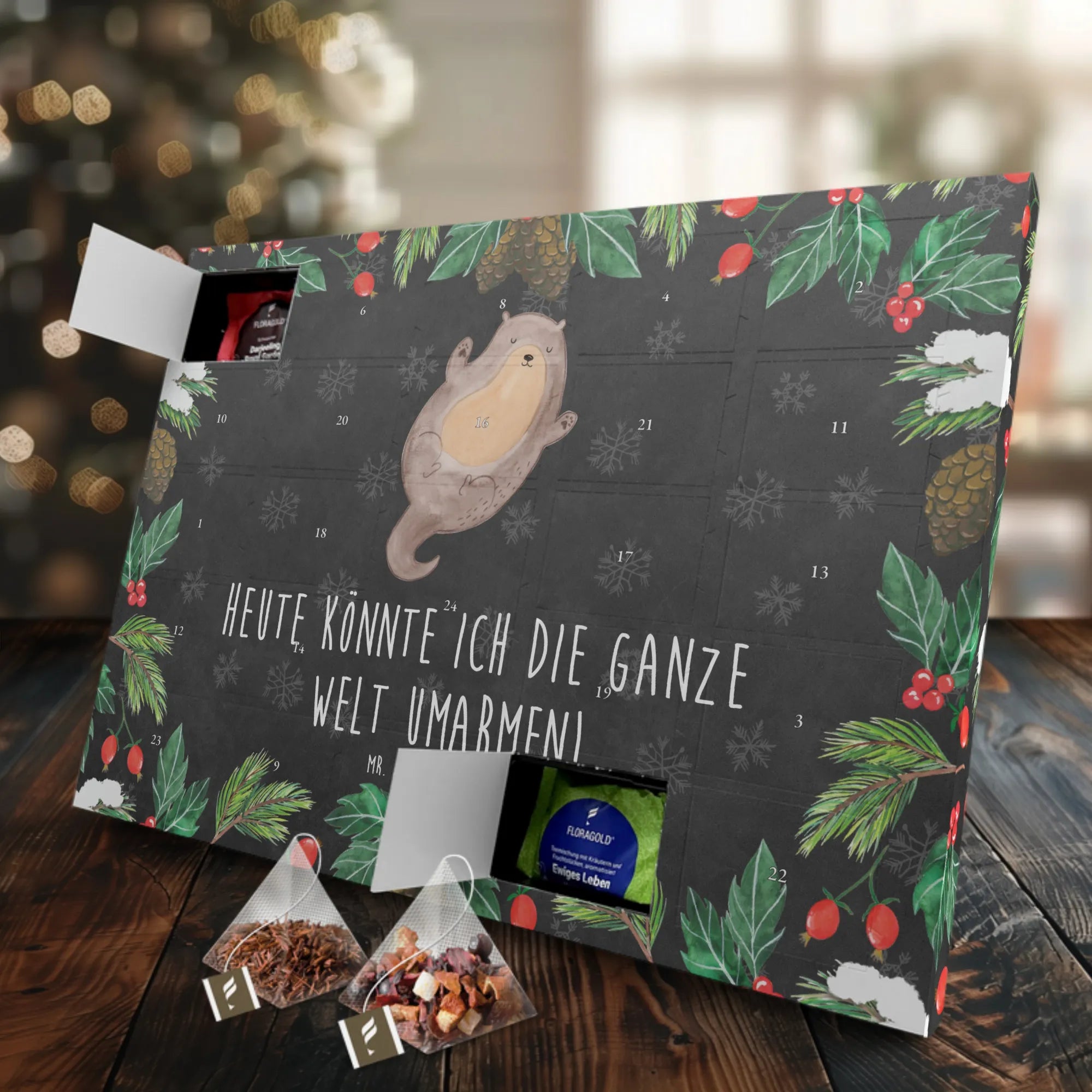Entdecke den bezaubernden Tee Adventskalender "Otter Umarmen" von Mr. & Mrs. Panda, der jeden Teeliebhaber in festliche Stimmung versetzt! Dieser wundervolle Adventskalender begeistert nicht nur mit seinen 24 einzeln verpackten Teesorten im Pyramidenbeutel, sondern auch mit einem liebevoll gestalteten Motiv eines niedlichen Otters.