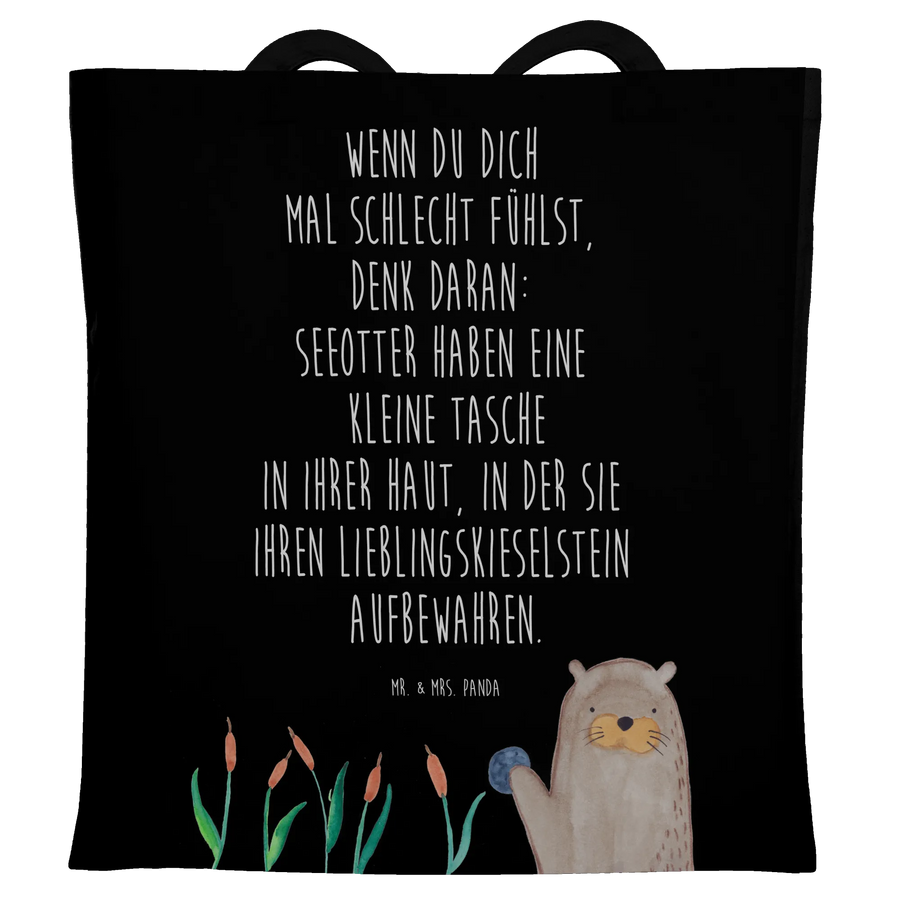 Ein weiteres Highlight ist der Slogan: "Wenn du dich mal schlecht fühlst, denk daran: Seeotter haben eine kleine Tasche in ihrer Haut, in der sie ihren Lieblingskieselstein aufbewahren." Diese liebevolle Botschaft macht die Tragetasche zu einem ganz besonderen Geschenk für Freunde und Familie oder einfach für dich selbst.