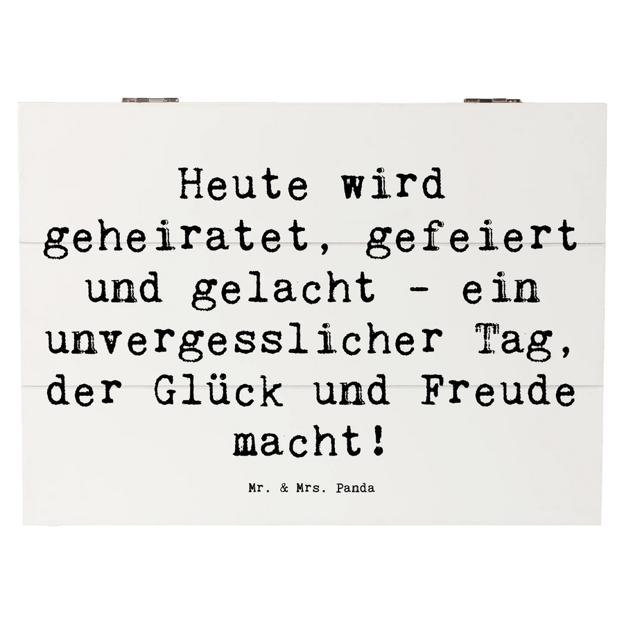 Die wunderschöne Holzkiste von Mr. & Mrs. Panda ist das perfekte Geschenk für Paare, die den schönsten Tag ihres Lebens feiern! 🎉 Mit dem Motto "Heute wird geheiratet, gefeiert und gelacht - ein unvergesslicher Tag, der Glück und Freude macht!" versehen, zaubert sie jedes Mal ein Lächeln ins Gesicht.