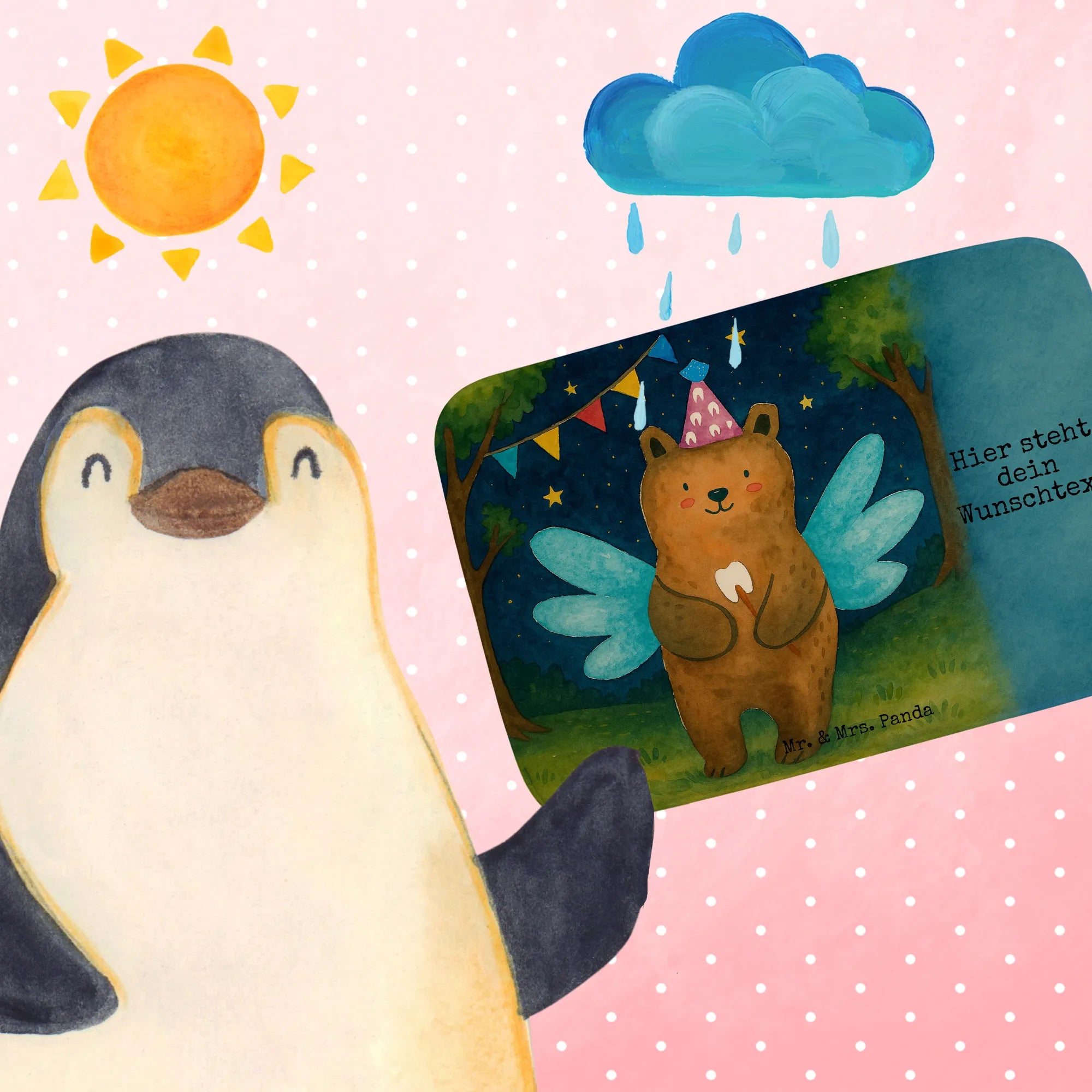 Unser Zahnbär ist ein süßer kleiner Freund, der mit seinen feinen Flügeln und dem funkelnden Zauberstab die Milchtännchen abholt. Die Zähne, die abfallen, sind für ihn wie kleine Schätze! Wenn dein erstes Zähnchen wackelt oder vielleicht schon ganz verloren ist, ist er bereit, es in eine Magie zu verwandeln. 'Grüße von der Zahnfee' trägt er stolz in seiner kleinen Botschaft. Jeder Milchzahn, den du verlierst, bedeutet einen Schritt in Richtung größerer Abenteuer und er ist hier, um sicherzustellen, dass diese Momente unvergesslich bleiben.