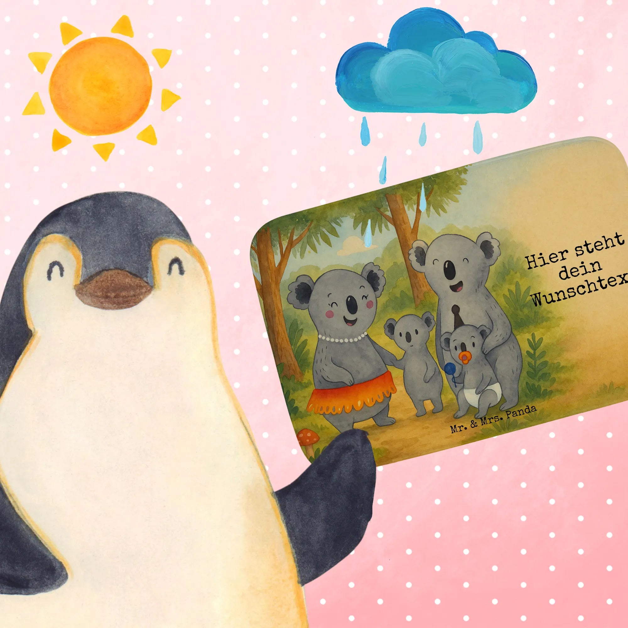 Diese liebevolle Koala Familie ist eine perfekte Darstellung von Zusammenhalt und Freude. Die großen Koalas stehen stolz, Mama mit ihrer eleganten Perlenkette und Papa mit dem bunten Partyhut zeigen, dass jeder Moment in der Familie einzigartig ist. Die kleinen Koalas, einer mit einem Lätzchen, der andere mit einem tollen Spielzeug, verkörpern die Unbeschwertheit und Neugier der Kindheit. Die Botschaft 'Familie ist dort, wo das Chaos beginnt und die Liebe niemals endet' bringt die Herzlichkeit und den Spaß, den das Familienleben mit sich bringt, auf den Punkt. Hier wird schnell klar, dass man auch in den turbulenten Zeiten immer wieder zusammenkommt, um Liebe und Freude zu teilen.
