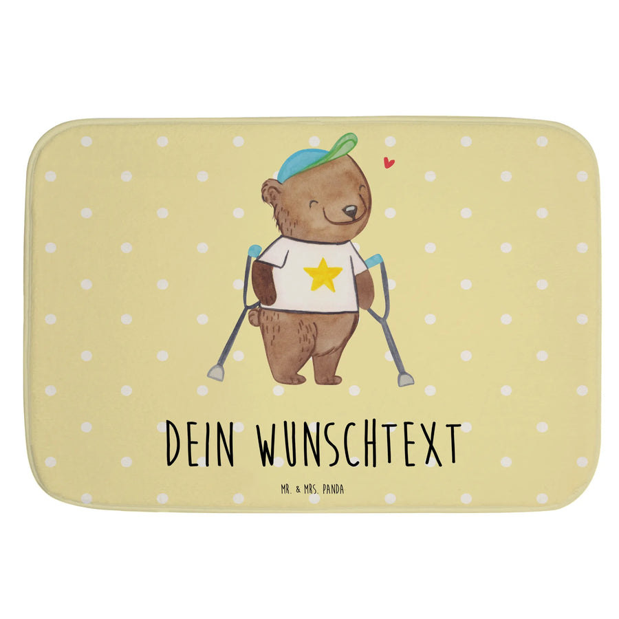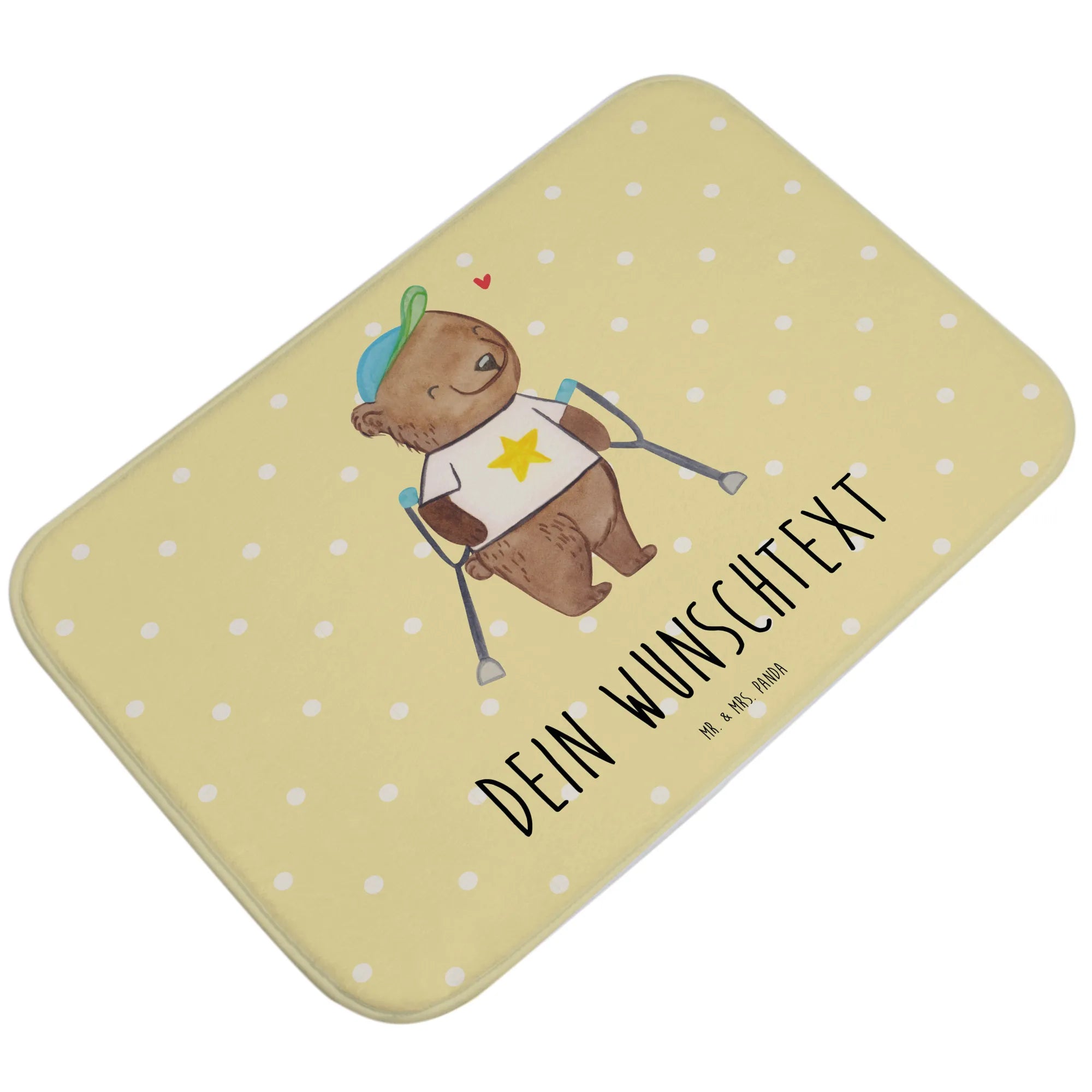 Unser personalisierter Badvorleger mit dem liebevollen Motiv "Bär Gehhilfen" aus der speziellen Kollektion "Tiere mit Superkräften" ist das perfekte Geschenk für alle, die ihren Alltag mit einem Handicap bestreiten. Er kombiniert nicht nur Funktionalität, sondern ist auch ein ganz besonderes Statement in Deinem Badezimmer. Mit einer flauschigen Oberfläche aus Premium Polyester und einer rutschfesten Gummibeschichtung sorgt dieser Badvorleger dafür, dass Du sicher und bequem aus der Dusche oder Badewanne steigen kannst. Die Maße von 590 mm x 400 mm sind ideal für den Einsatz an allen gängigen Standorten im Bad.