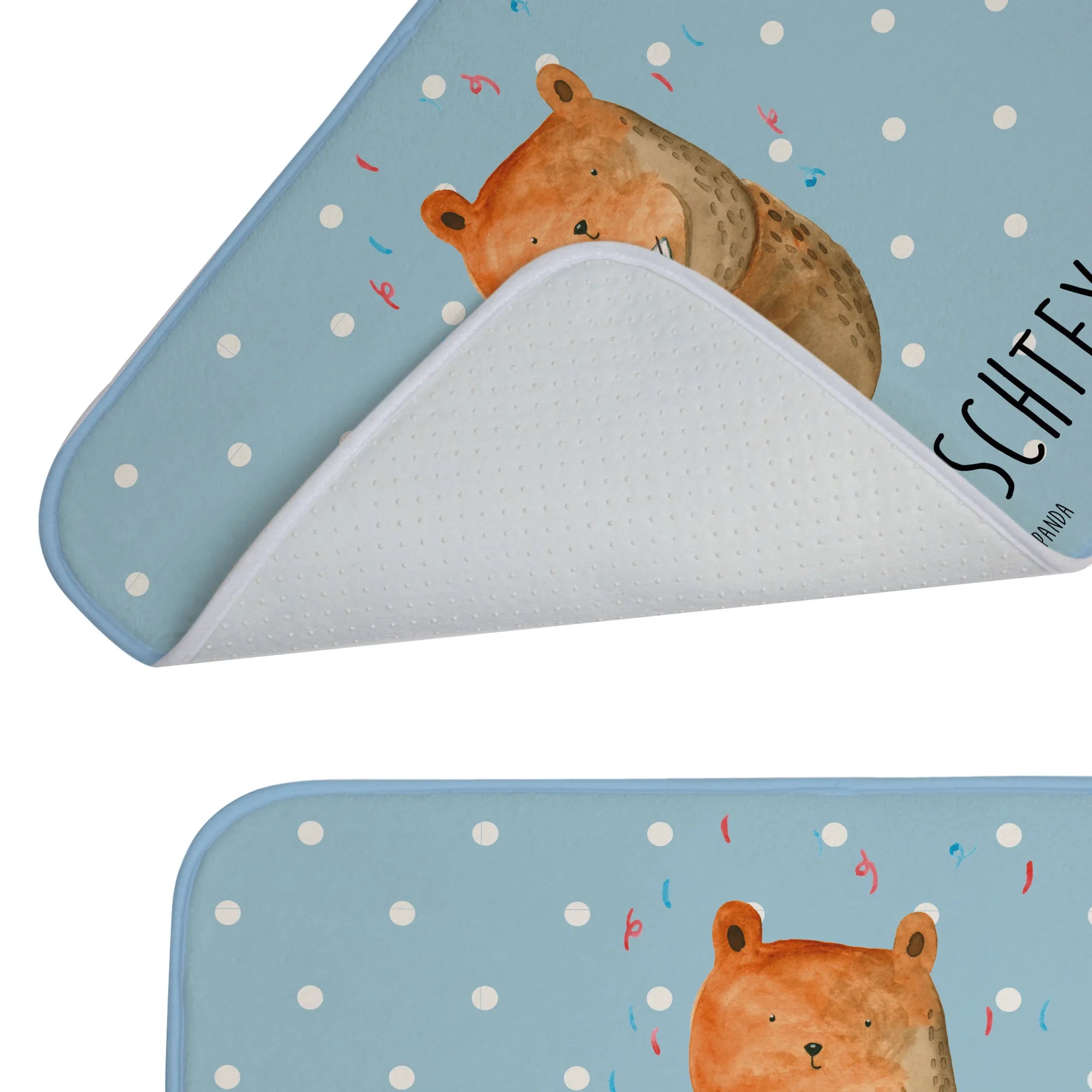 Entdecke unseren zauberhaften personalisierten Badvorleger mit dem fröhlichen Bär Party Motiv von Mr. & Mrs. Panda! 🐻✨ Dieser Badvorleger bringt nicht nur gute Laune in dein Badezimmer, sondern sorgt auch dafür, dass du beim Betreten der Dusche oder Badewanne nicht ausrutschst. Er ist in einer großzügigen Größe von 590 mm x 400 mm erhältlich und besteht aus flauschiger Premium Kunstfaser mit einer Anti-Rutsch Gummibeschichtung.