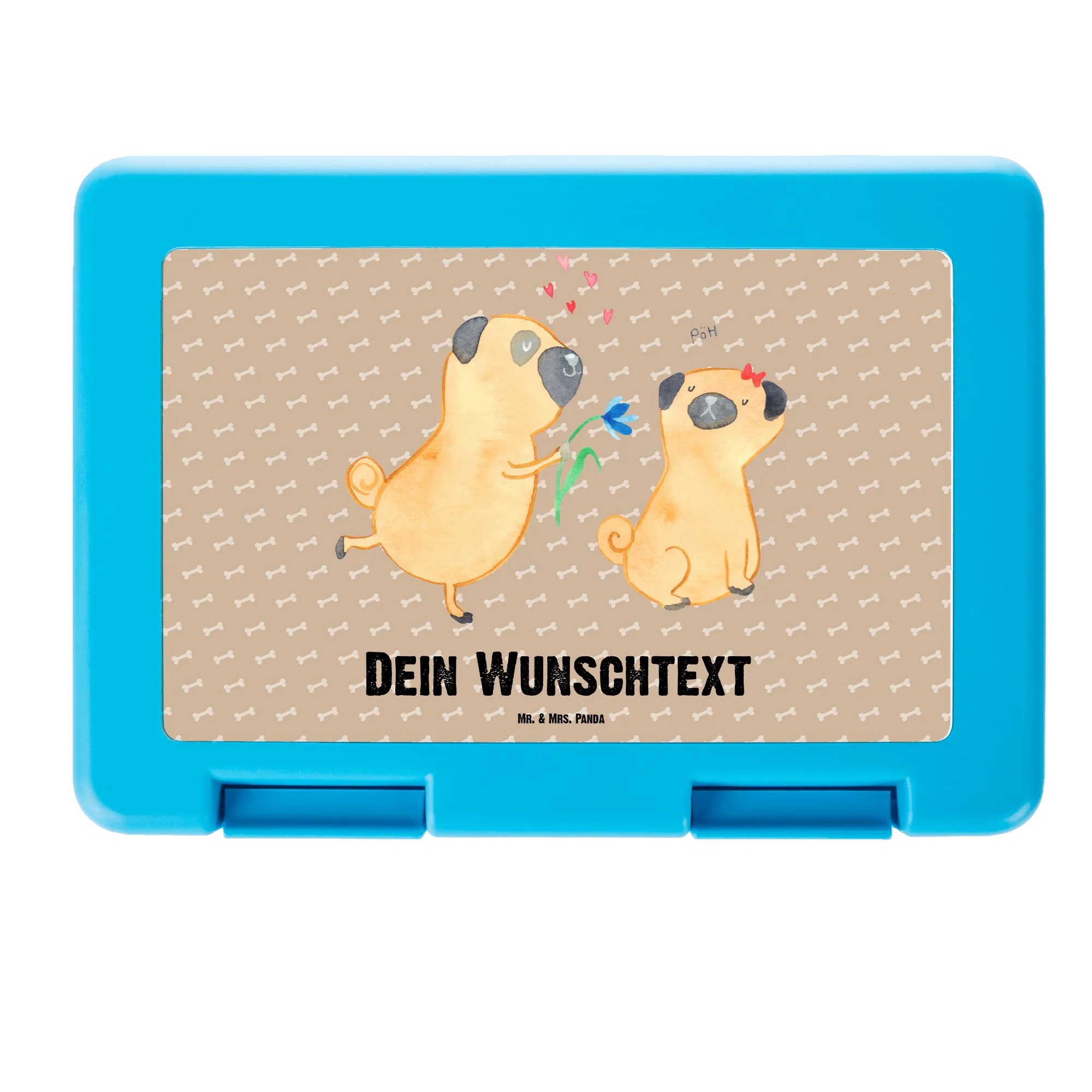 Bist du auf der Suche nach dem perfekten Geschenk für einen Tierliebhaber oder Hundebesitzer? Unsere personalisierte Brotdose mit dem niedlichen Motiv "Mops verliebt" ist die ideale Wahl!