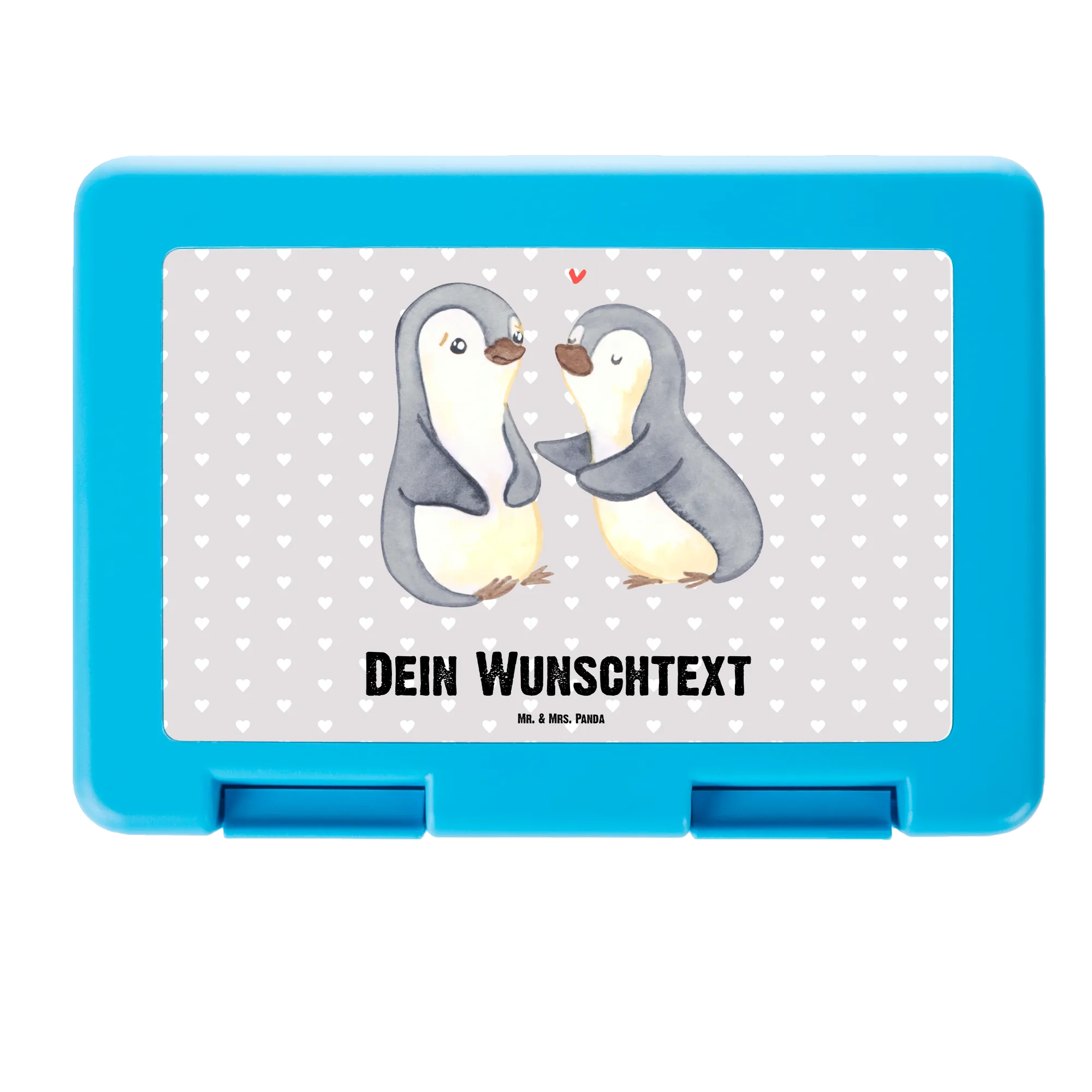 Entdecke die ideale Ergänzung für die Schule oder den Alltag mit unserer liebevoll gestalteten, personalisierten Brotdose "Pinguine trösten" von Mr. & Mrs. Panda. Diese einzigartige Brotdose ist mehr als nur ein Aufbewahrungsbehälter für Pausenbrote. Sie wird mit einem charmanten Motiv bedruckt, das zwei zärtlich neigende Pinguine zeigt, die sich gegenseitig Trost spenden. Dieses Bild vermittelt Geborgenheit und Liebe – perfekt für alle, die ihren Liebsten ein Lächeln ins Gesicht zaubern möchten.
