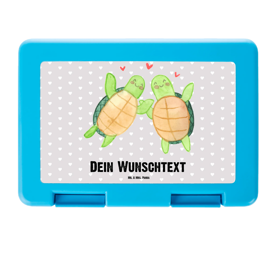 Die personalisierte Brotdose mit dem niedlichen Motiv des Schildkröten Paars aus der Kollektion Liebe von Mr. & Mrs. Panda ist das perfekte Geschenk für alle, die ihre Liebe ausdrücken wollen. Diese liebevoll gestaltete Brotbox zeigt zwei stilisierte Schildkröten, die sich zueinander gewandt haben und mit einem sanften Lächeln sowie lachenden Augen die Zuneigung und Freude verkörpern. Zwischen ihnen schweben kleine, rote Herzen, die die Verbundenheit und das Glück symbolisieren.