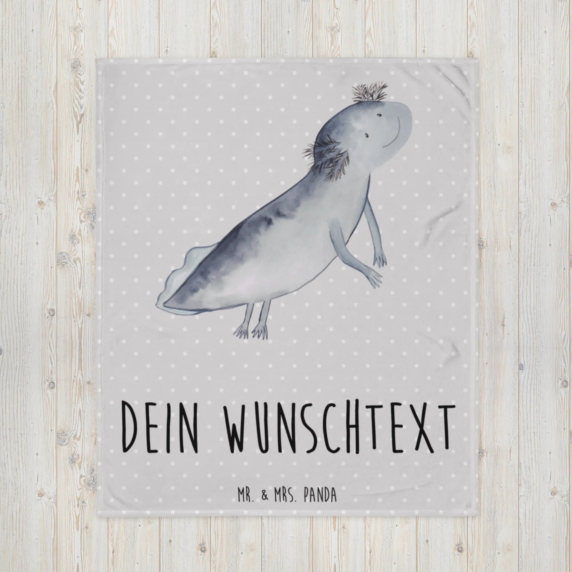 Die personalisierte Decke mit dem süßen Axolotl-Motiv von Mr. & Mrs. Panda ist der perfekte Begleiter für kuschelige Stunden auf dem Sofa oder im Bett. Sie bringt nicht nur Wärme, sondern auch einen Hauch von Freude in jeden Raum. Das alleinstehende, verspielte Axolotl-Design fasziniert und erhellt den Alltag.