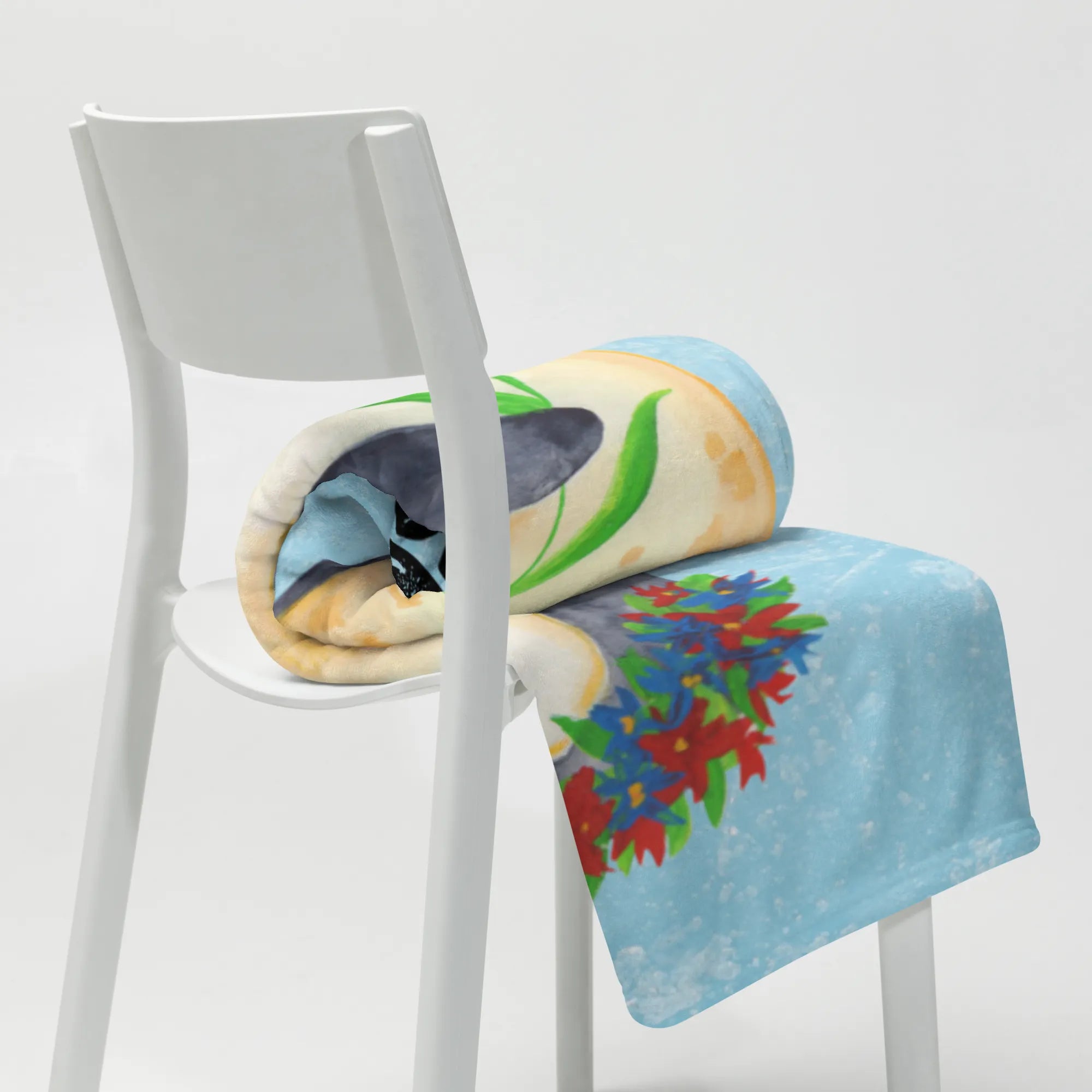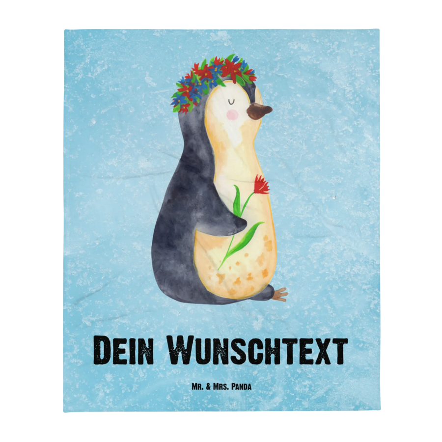 Mit einem niedlichen Pinguin, der einen Blumenkranz trägt, verkörpert diese Decke Lebensfreude und Individualität. Du kannst sie ganz einfach mit deinem Wunschnamen oder Wunschtext personalisieren, sodass sie zu einem ganz besonderen Geschenk für Freunde und Familie wird.