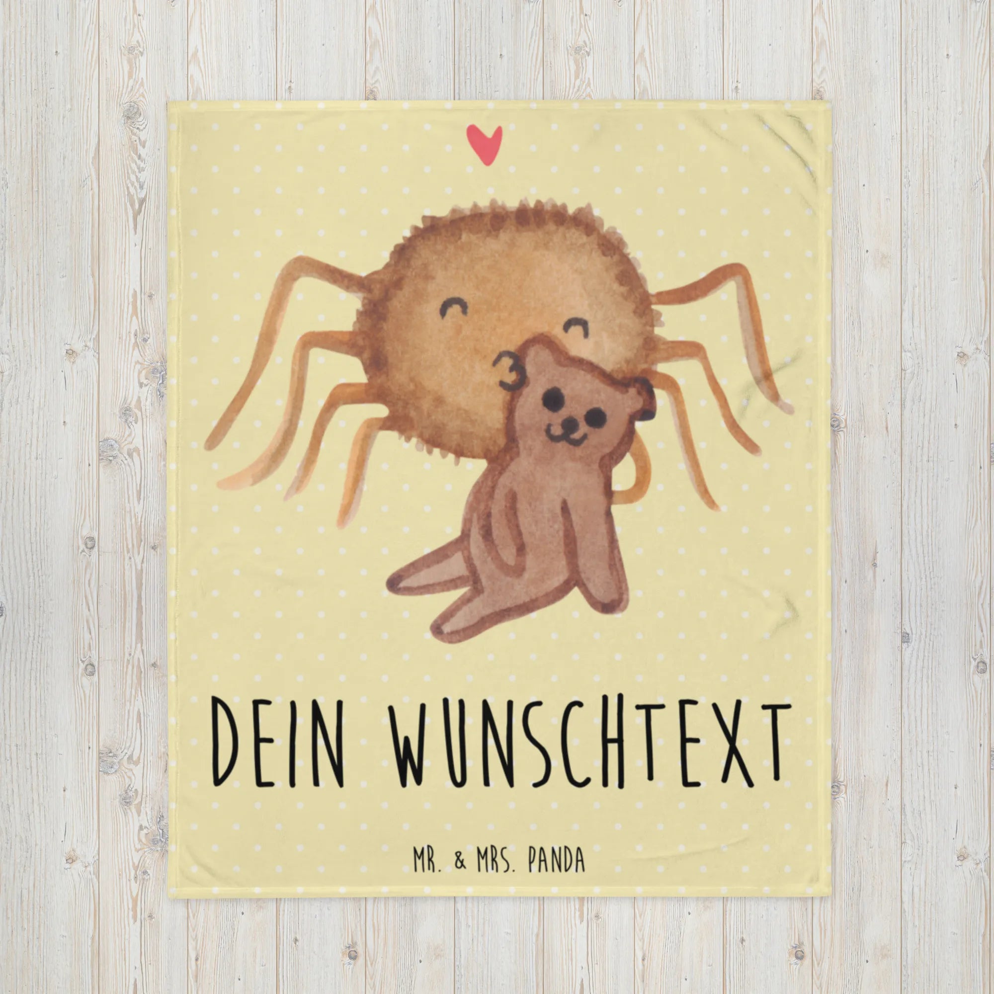Diese bezaubernde Decke ist nicht nur ultraweich und kuschelig, sondern auch individuell mit Deinem Wunschnamen sowie dem liebevollen Motiv "Spinne Agathe Teddy" personalisierbar. Sie zeigt die niedliche Spinne Agathe, die ihren kleinen Teddy mit strahlenden Augen festhält und ein kleines Herzchen neben ihrem Kopf hat.