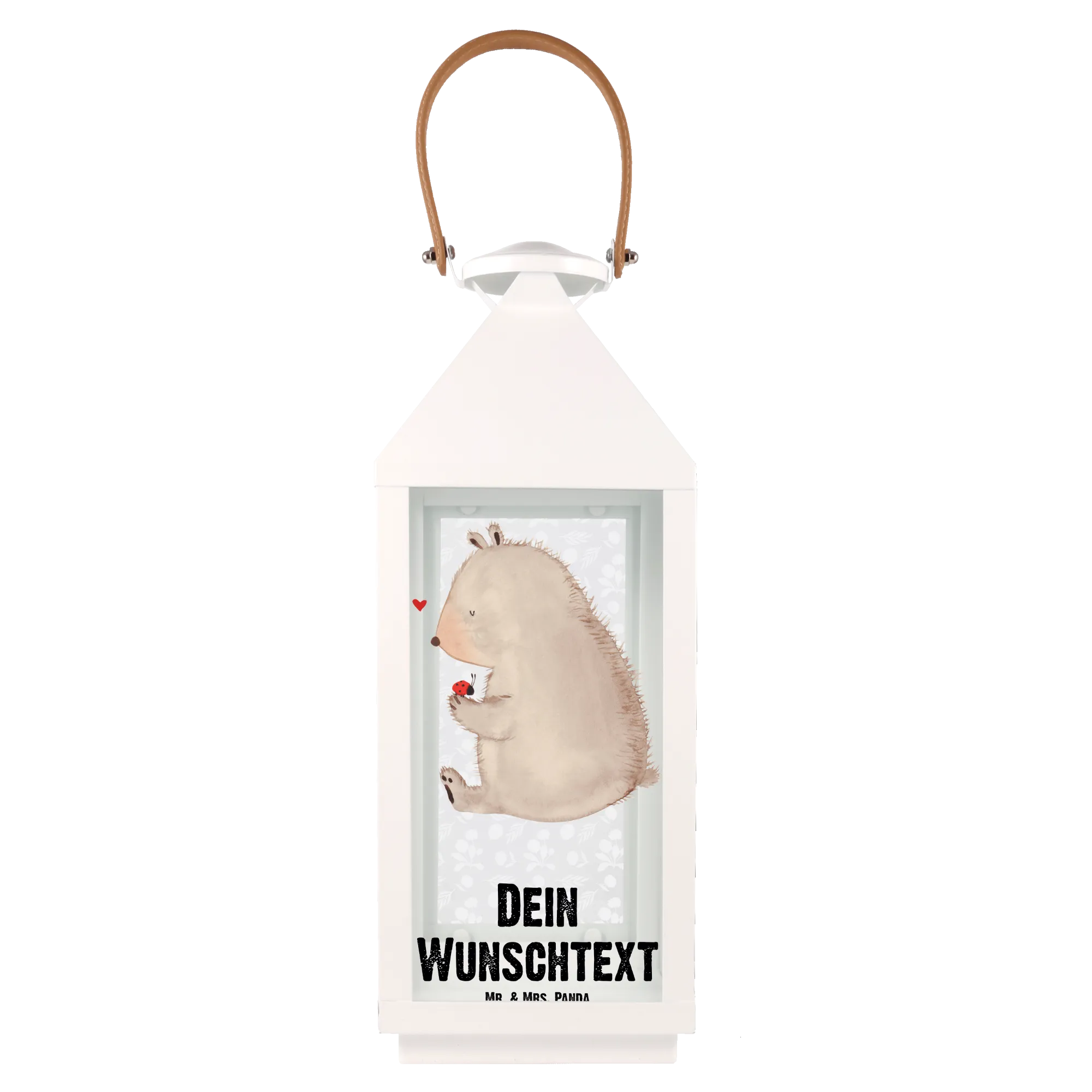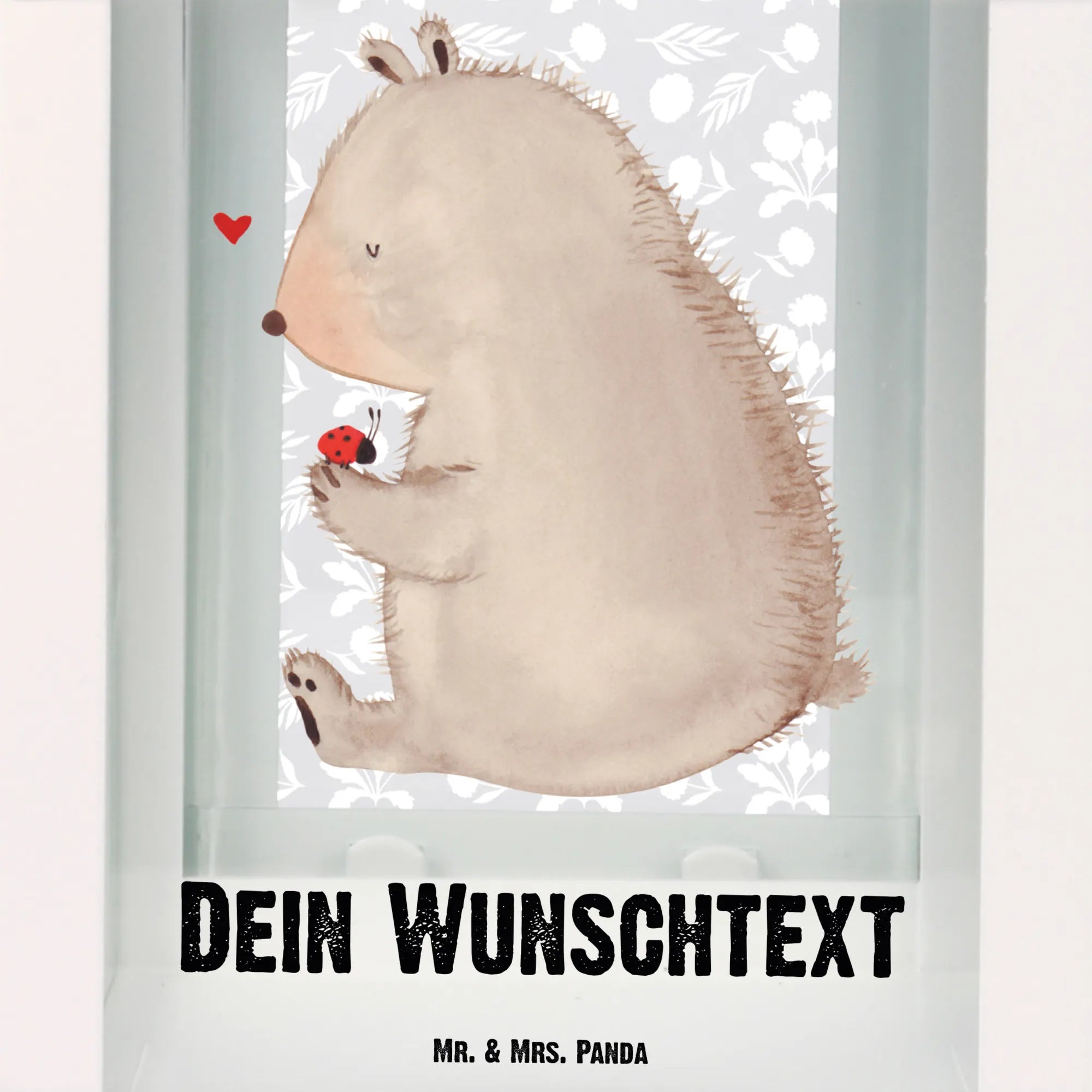 Die personalisierte Deko Laterne Bär mit Marienkäfer von Mr. & Mrs. Panda ist der perfekte Begleiter für gemütliche Abende im Freien oder drinnen! Diese einzigartige Laterne ist mit einem süßen Bären und einem Marienkäfer verziert, die gemeinsam im Licht der Kerzen strahlen. Du kannst diese Laterne nach deinen Wünschen personalisieren, sei es mit einem Namen oder einem eigenen Spruch.