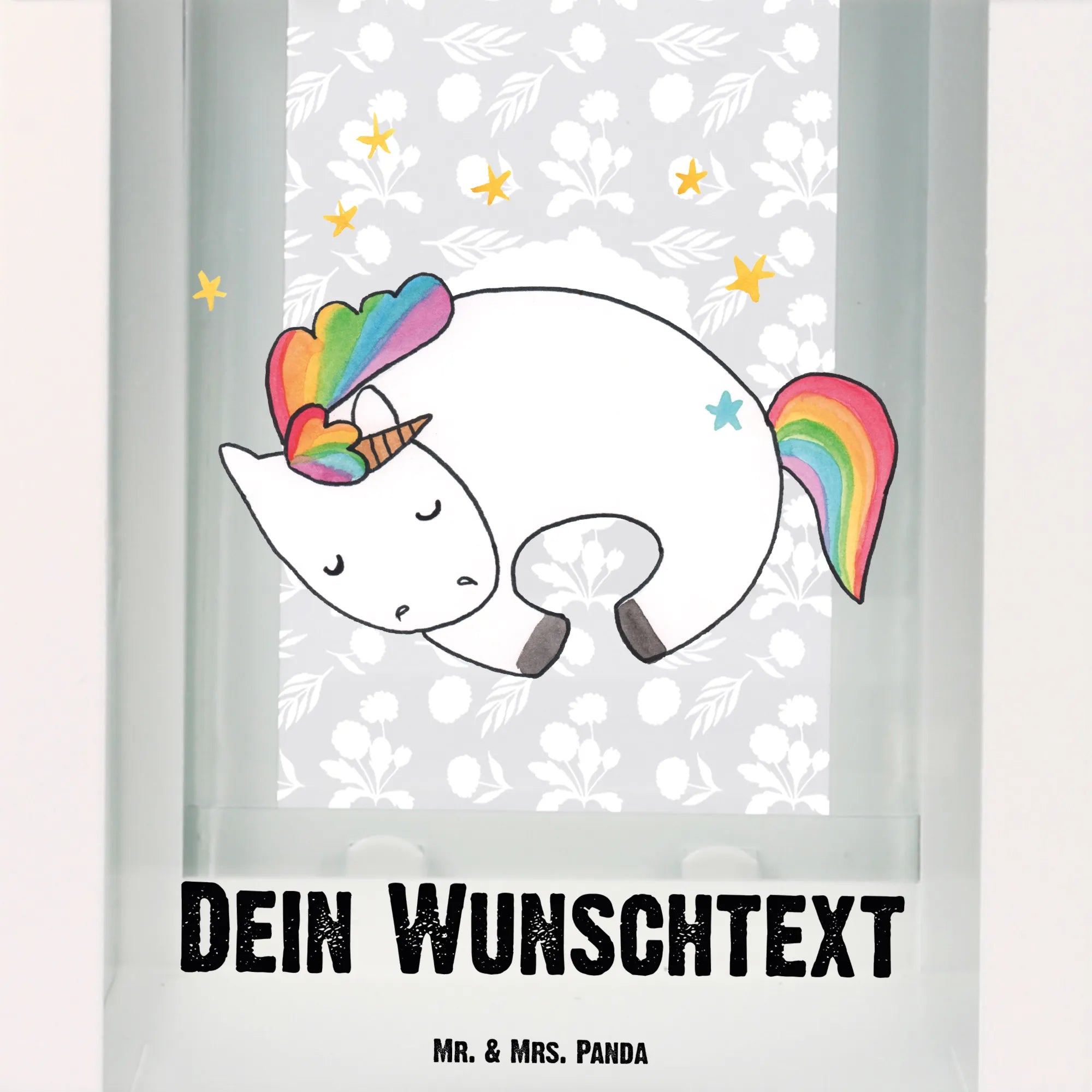 Entdecke die zauberhafte Welt unserer personalisierten Deko Laterne mit dem strahlenden Motiv "Einhorn Nacht" aus der Einhorn-Kollektion. Diese wunderschöne und einzigartige Laterne bringt nicht nur Licht, sondern auch Magie in deine Räume. Ob im Garten, auf der Terrasse oder im Wohnzimmer, das niedliche schlafende Einhorn und der charmante Spruch "Die Realität ist was für Menschen, die Angst vor Einhörnern haben" laden zum Träumen ein.