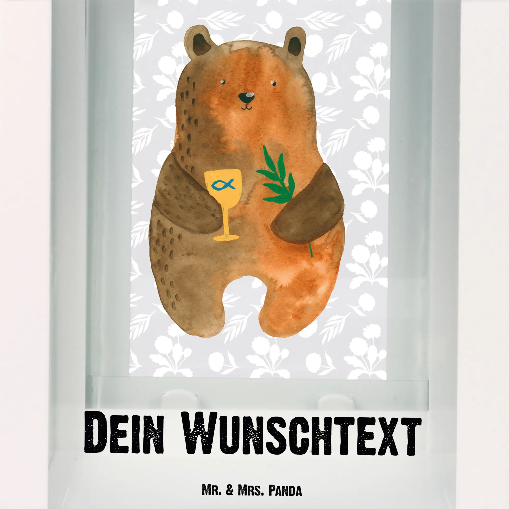 Diese Laterne ist nicht nur ein bezauberndes Deko-Element, sondern auch eine bleibende Erinnerung an einen wichtigen Tag im Leben. Mit ihrem liebevoll gestalteten Bär, der einen goldenen Kelch und einen Zweig in den Händen hält, sorgt diese Laterne für eine festliche Atmosphäre und verleiht jedem Raum eine besondere Note, egal ob drinnen oder draußen.