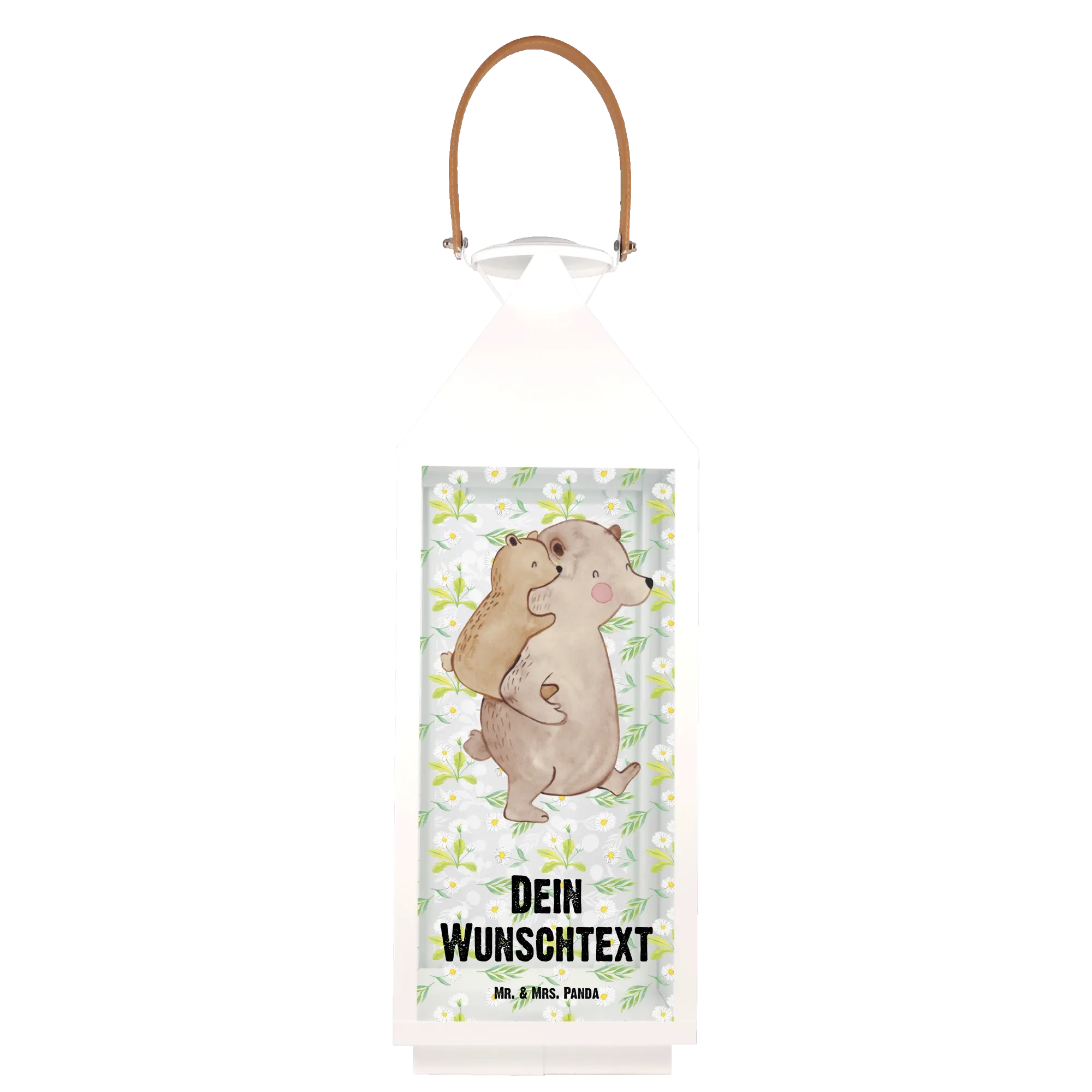 In der Familien Kollektion von Mr. & Mrs. Panda bündeln sich die schönsten Geschenke für die Familie. Verleihe deinen Geschenken eine persönliche Note und erfreue deine Liebsten mit der personalisierten Deko Laterne Papa Bär – ein Geschenk voller Wärme, Liebe und Licht.