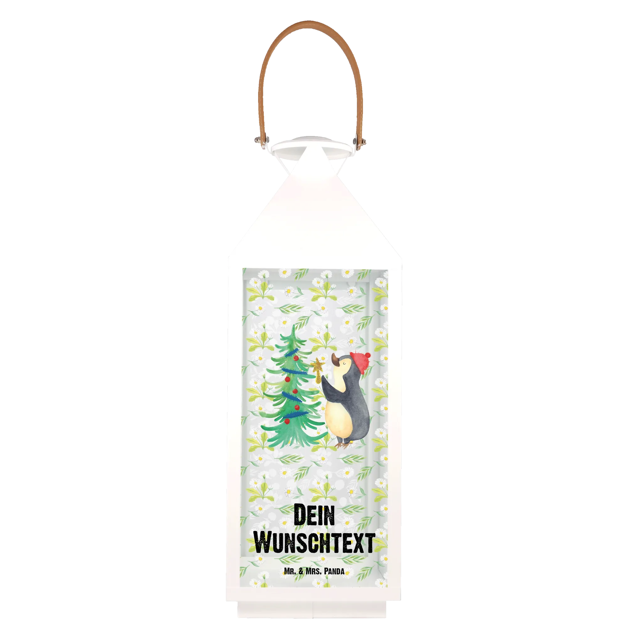 Die personalisierte Deko Laterne mit dem niedlichen Pinguin und dem Weihnachtsbaum aus der Winter Kollektion von Mr. & Mrs. Panda ist der perfekte Begleiter für die besinnliche Zeit des Jahres! Diese liebevoll gestaltete Laterne bringt nicht nur Licht in dein Zuhause, sondern auch eine ganz besondere Atmosphäre.