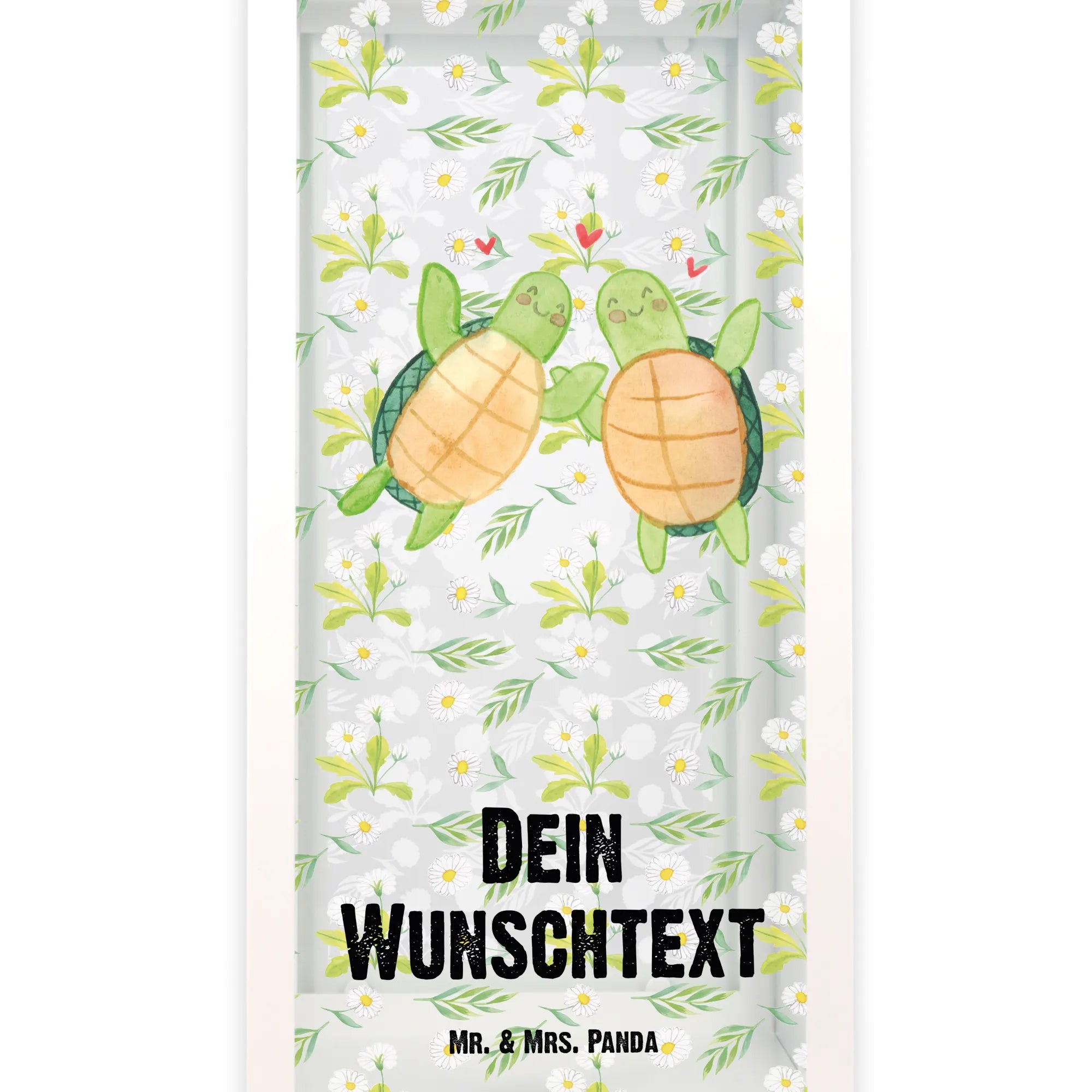 Die personalisierte Deko Laterne mit dem wunderschönen Motif "Schildkröten Paar" von Mr. & Mrs. Panda ist das perfekte Geschenk für alle, die Liebe und Zuneigung in ihren Garten oder auf den Balkon bringen möchten. Ob für den Valentinstag, den Hochzeitstag oder einfach als liebevolles Mitbringsel für deinen Partner oder deine Partnerin – diese Laterne sorgt für ein gemütliches Ambiente und setzt gleichzeitig ein liebevolles Statement. Mit einem einzigartigen Design, das zwei niedliche Schildkröten zeigt, die sich zärtlich zueinander gewandt haben und umgeben von kleinen Herzen, wird diese Laterne dein Zuhause in ein zauberhaftes Licht tauchen.