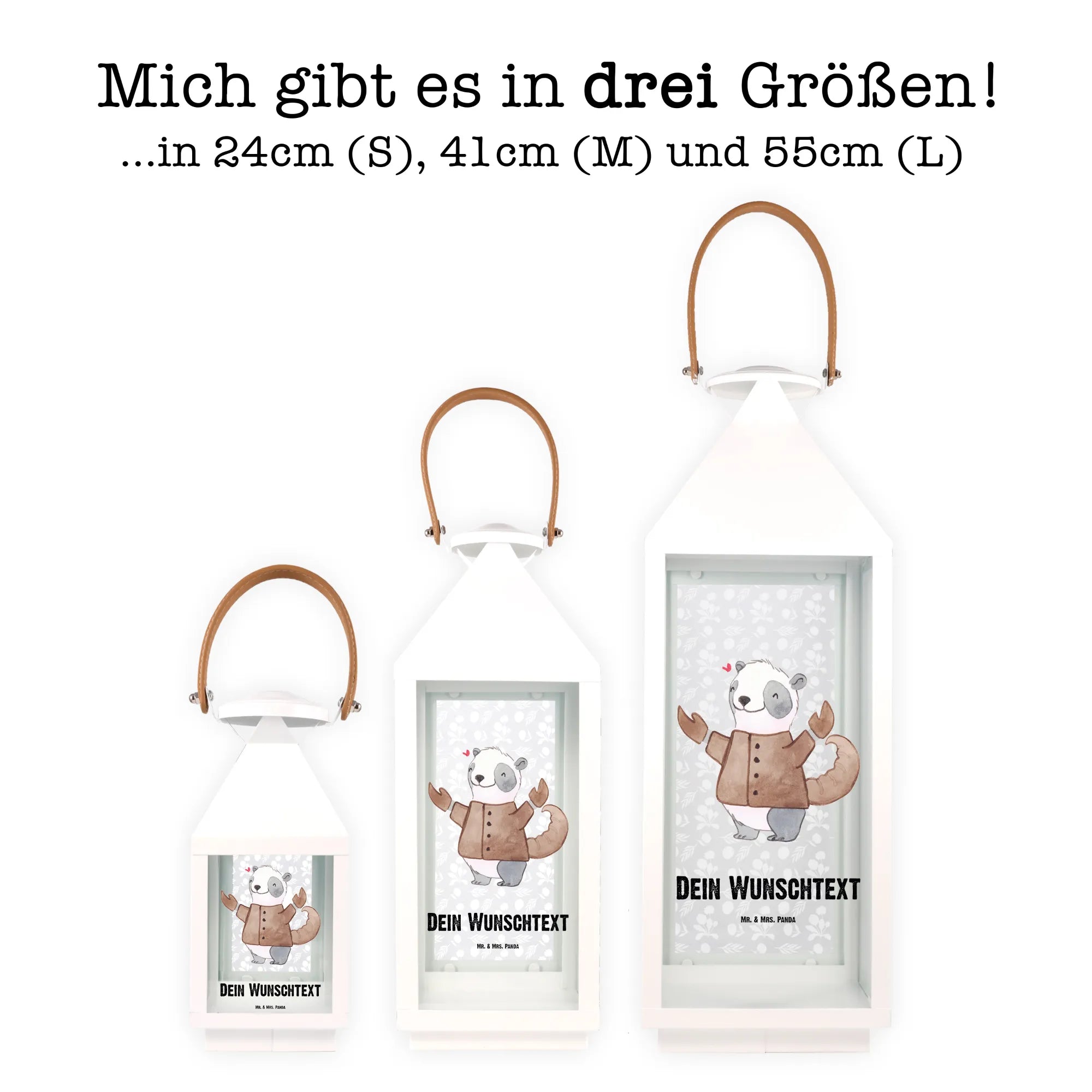 Erlebe die Magie unserer personalisierten Deko Laterne von Mr. & Mrs. Panda! Diese wunderschöne Hängeleuchte ist aus hochwertigem Metall und Premium-Glas gefertigt und misst 240 mm in der Höhe und 100 mm in beiden Breiten. Sie ist perfekt für die Terrasse oder den Balkon und schafft eine gemütliche Atmosphäre sowohl im Innen- als auch im Außenbereich. Jede Laterne ist mit einzigartigen, liebevoll bedruckten Sprüchen und Motiven von Mr. & Mrs. Panda verziert und kann mit deinem ganz persönlichen Wunschtext oder Namen individuell gestaltet werden. Mit einer praktischen Tür ausgestattet, ermöglicht sie ein einfaches Einsetzen von Kerzen oder Lichterketten. Bitte beachte, dass sie nicht wetterfest ist, aber dennoch für viele Gelegenheiten drinnen und draußen bestens geeignet ist.