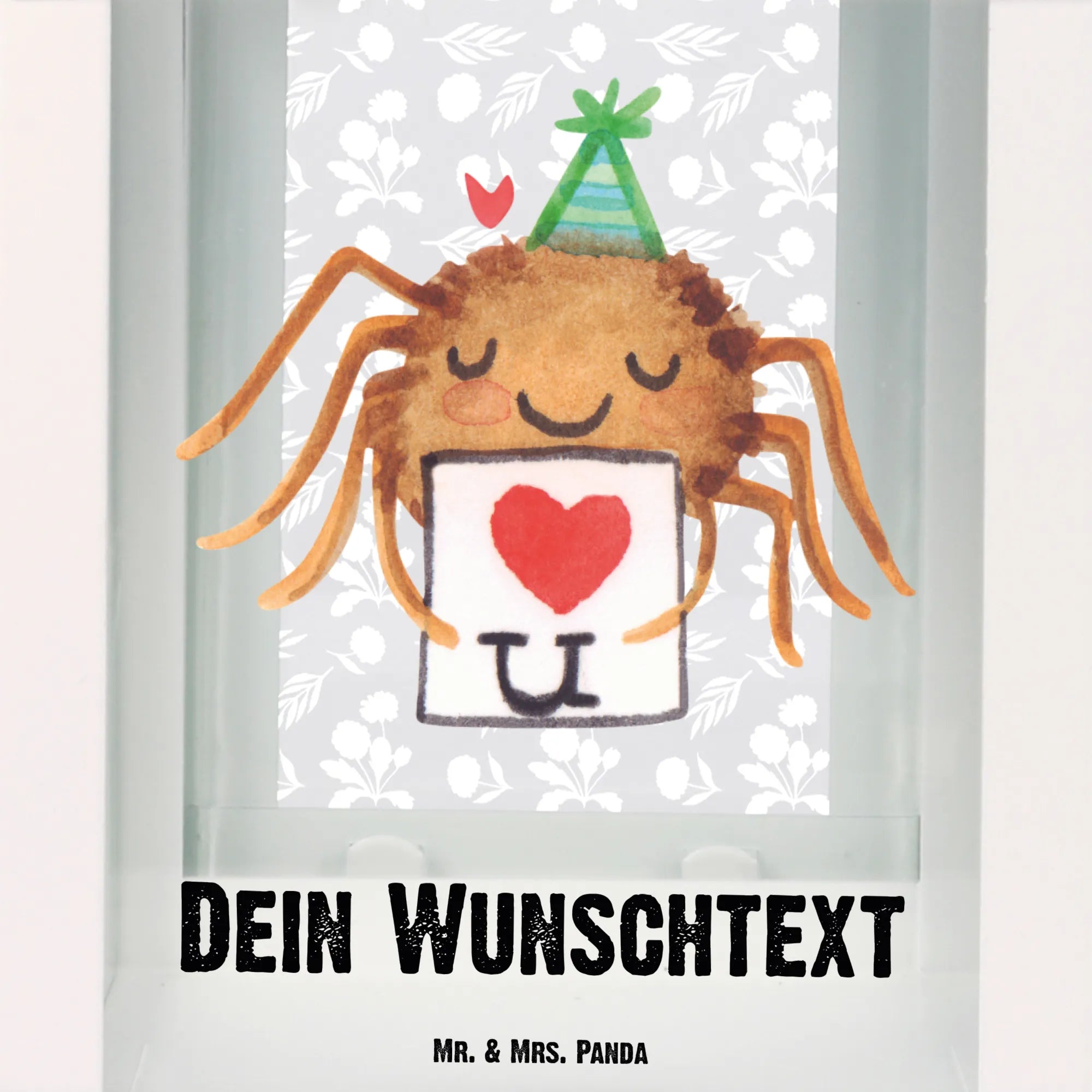 Entdecke die bezaubernde personalisierten Deko Laterne mit der niedlichen Spinne Agathe aus der beliebten Spinne Agathe Kollektion von Mr. & Mrs. Panda! Diese Laterne ist nicht nur ein fantastisches Deko-Element für deinen Garten oder Balkon, sondern auch ein wunderschönes Liebesgeschenk, das Herzen berührt.