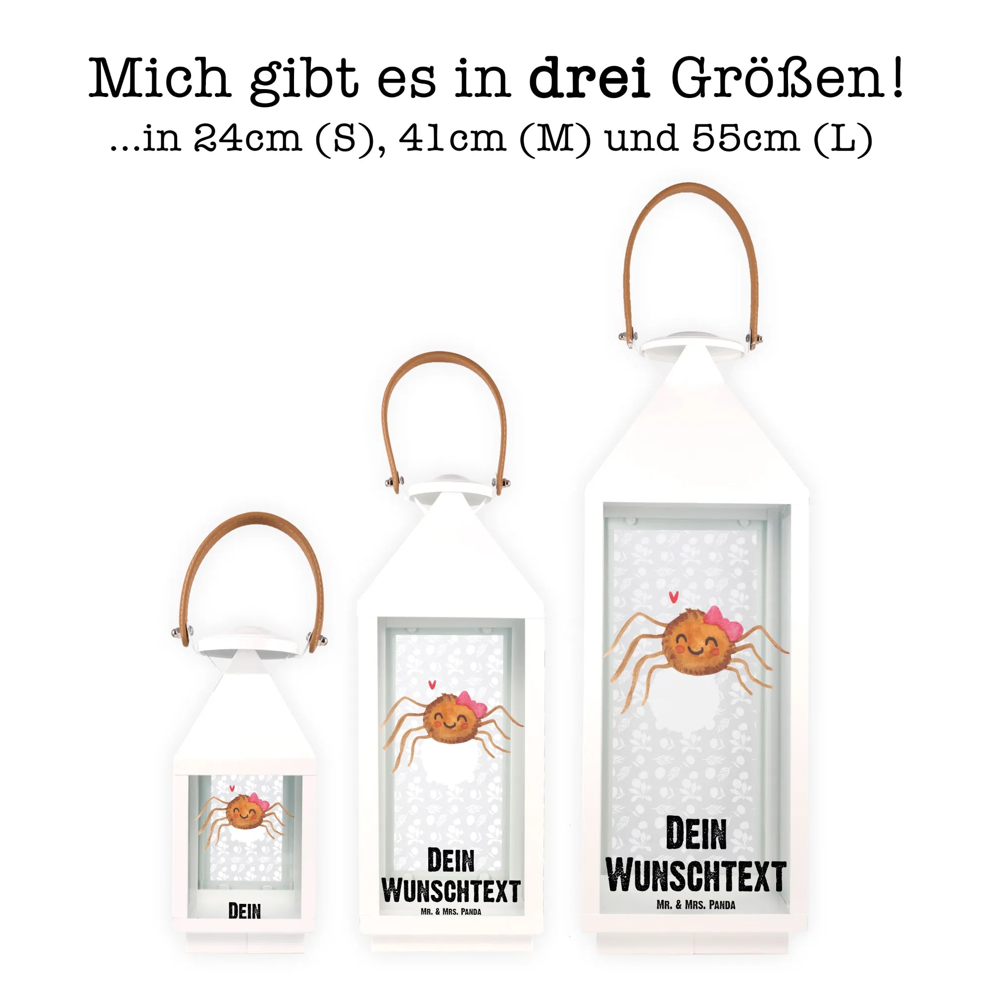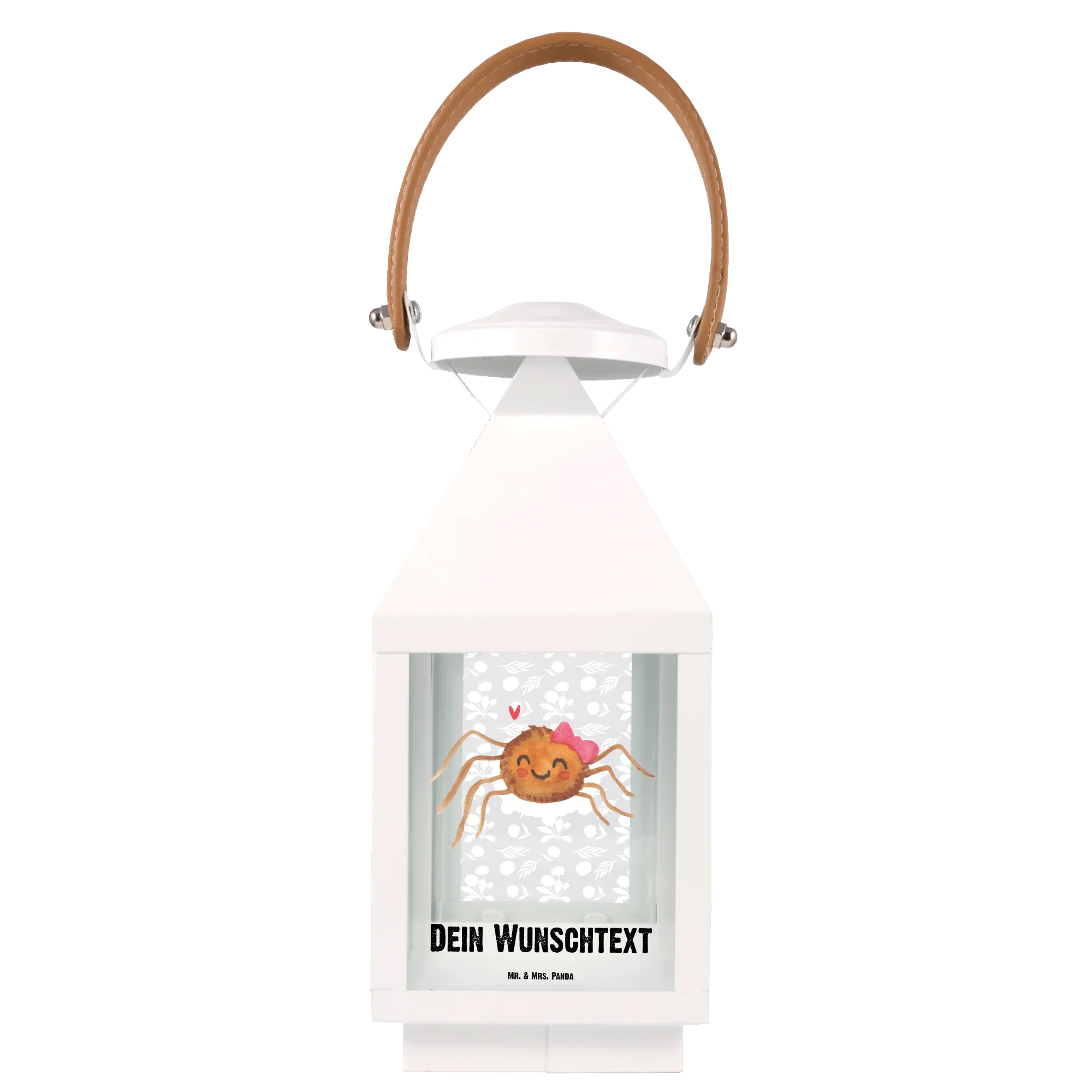 Diese Laterne ist das perfekte Geschenk für alle, die das Besondere lieben und sich gerne von der Lebensfreude von Mr. & Mrs. Panda anstecken lassen. Hast du einen Geburtstag, ein Jubiläum oder ein anderes besonderes Ereignis? Verschenke die personalisierte Deko Laterne 'Spinne Agathe Freude' und mache jemandem eine ganz besondere Freude. Sie wird sicherlich ein Lächeln auf die Gesichter deiner Freunde und Familie zaubern, egal ob drinnen oder draußen.