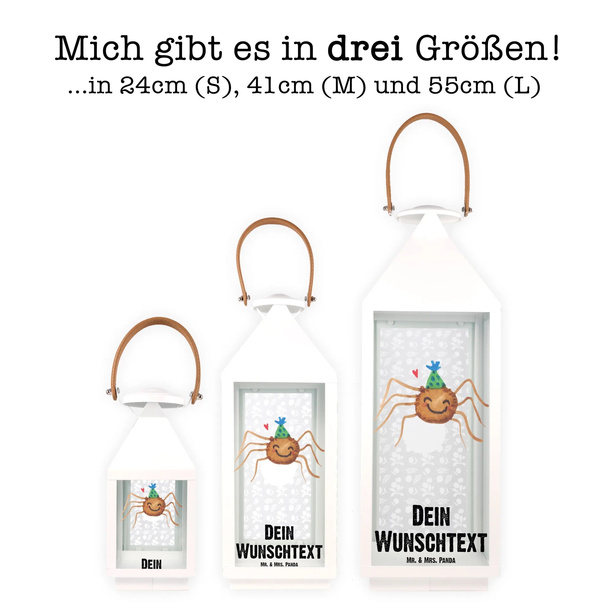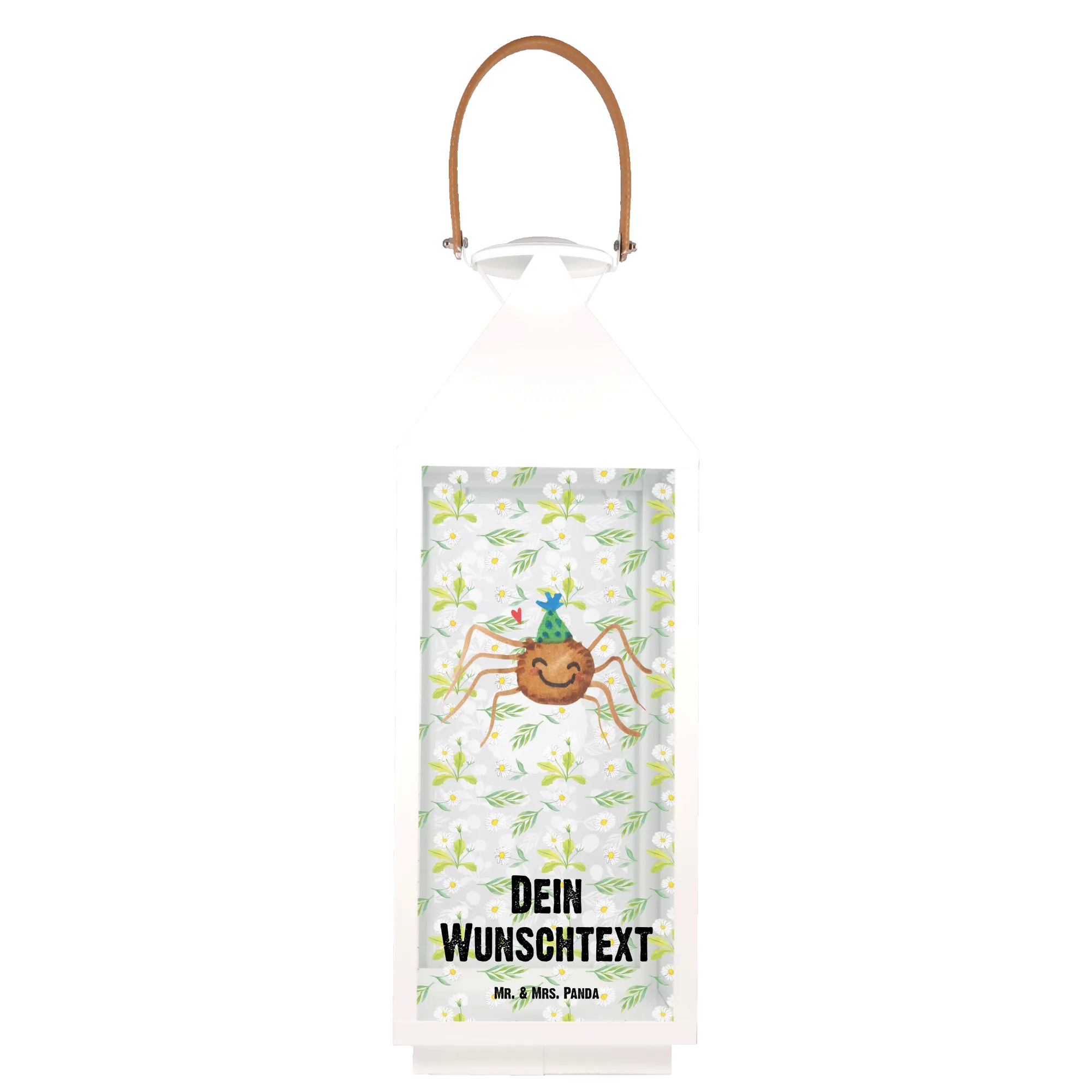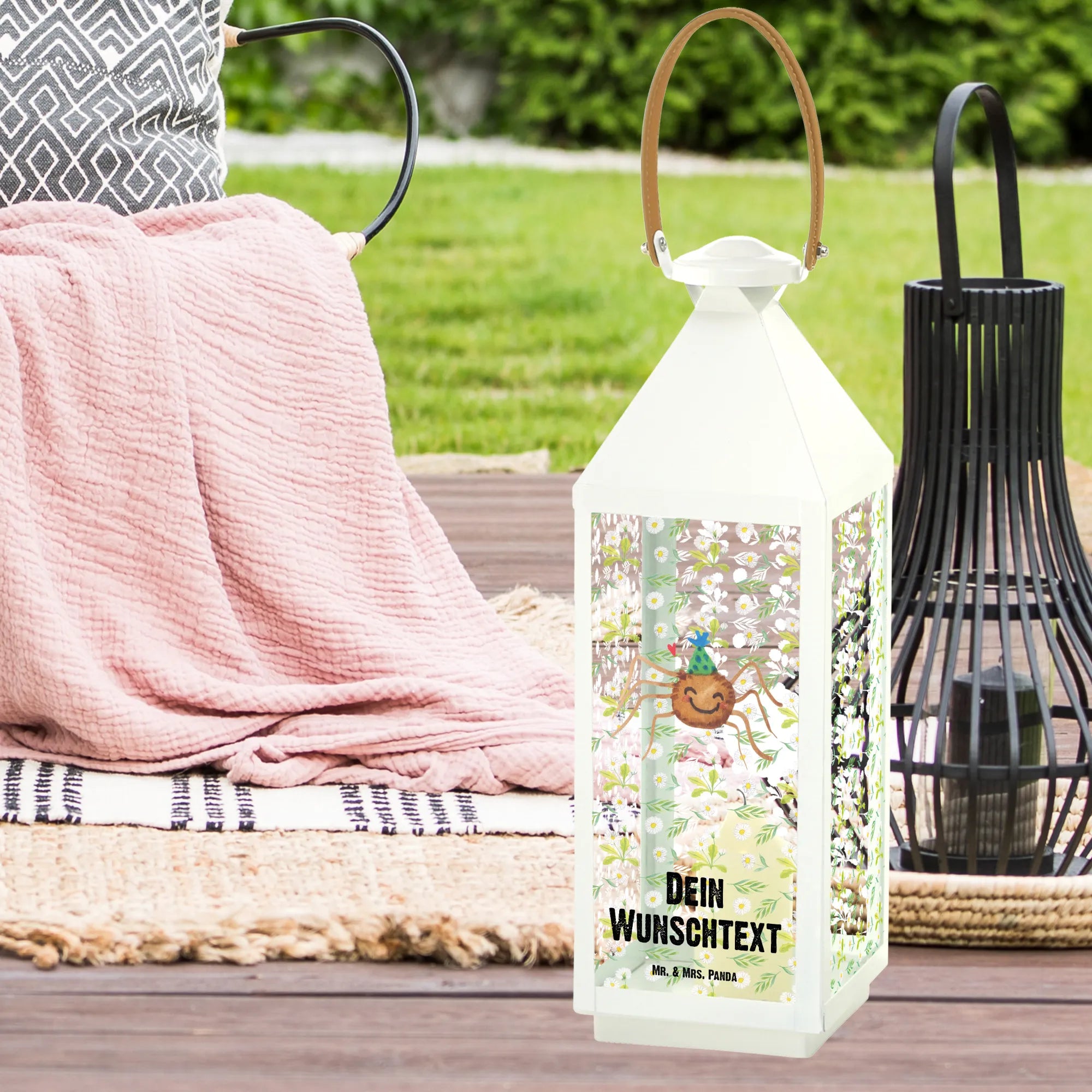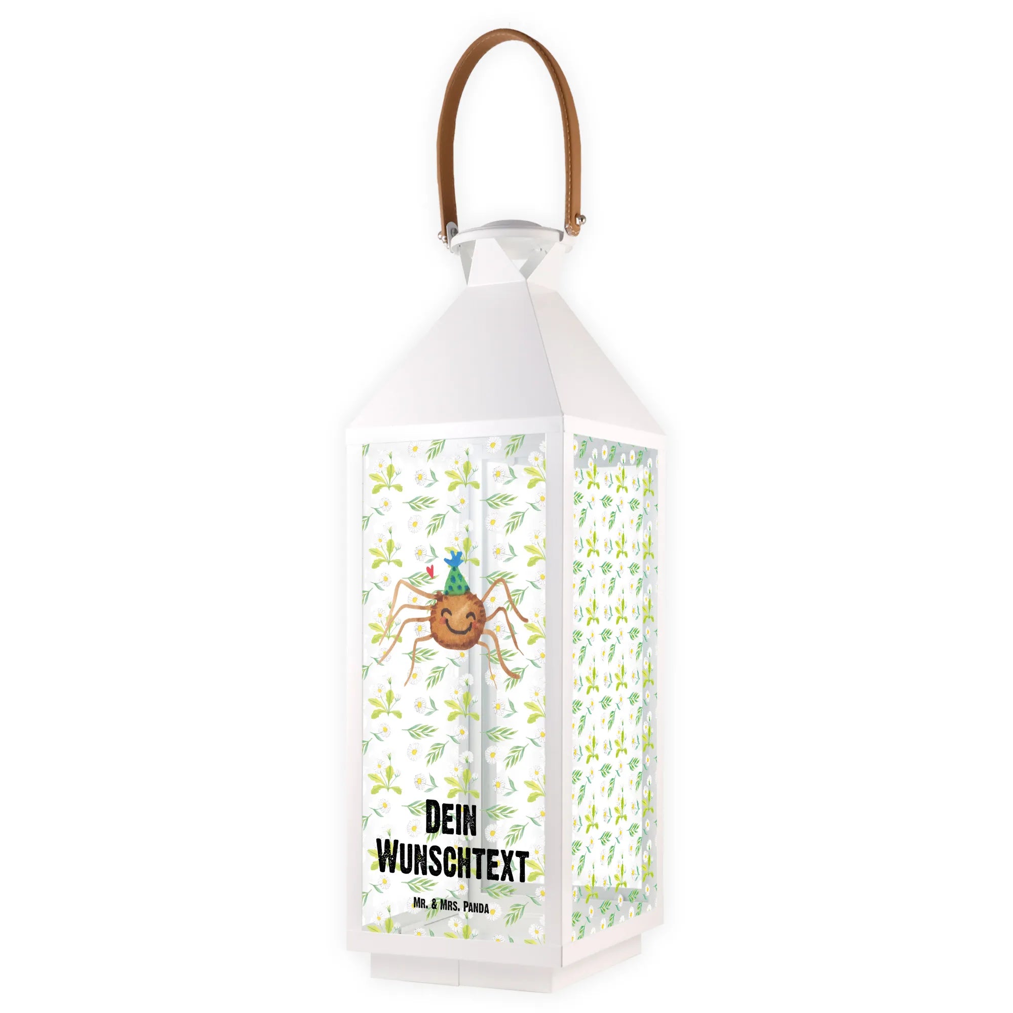 Die personalisierte Deko Laterne 'Spinne Agathe Party' von Mr. & Mrs. Panda ist das ideale Geschenk für alle, die Freude und Lebenslust in ihren Garten oder auf ihre Terrasse bringen möchten. Mit ihrem liebevoll handgezeichneten Motiv der Spinne Agathe im Partyhut zaubert diese Laterne ein Lächeln auf jedes Gesicht. Die Worte, die sie begleitet - 'Du bist toll, so wie du bist...'- inspirieren zur Selbstliebe und zur Wertschätzung der kleinen Wunder im Alltag.