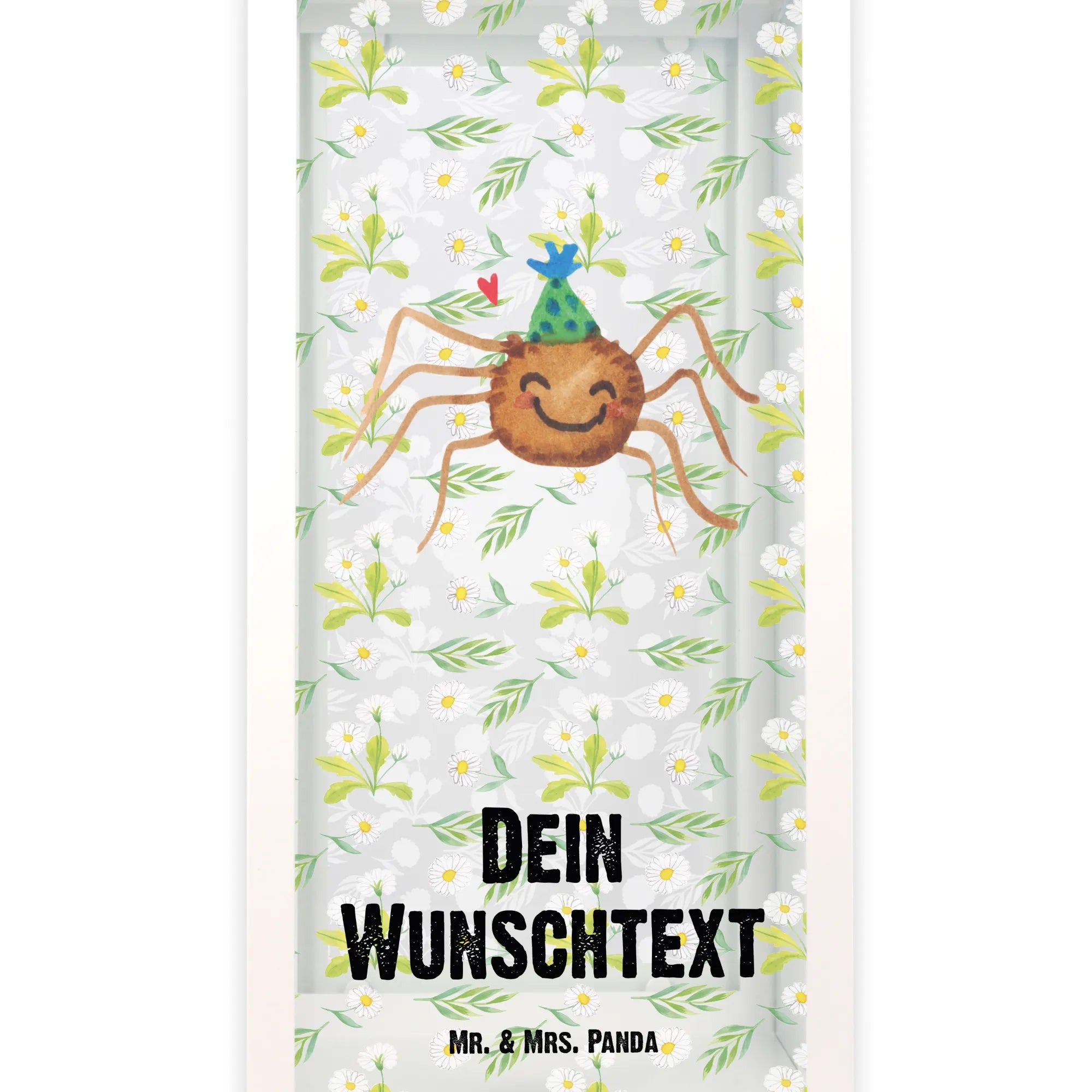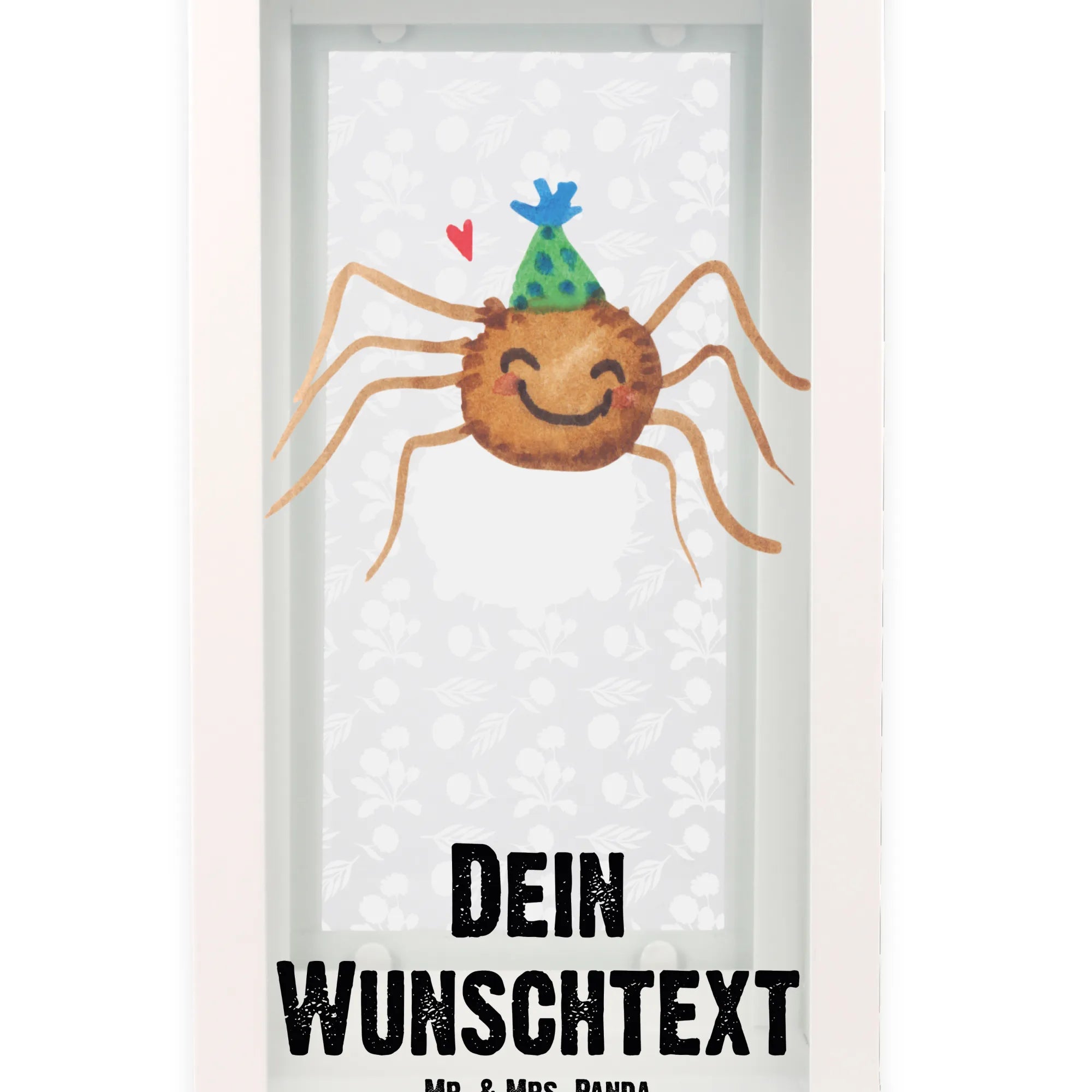 Die personalisierte Deko Laterne Spinne Agathe Party von Mr. & Mrs. Panda ist mehr als nur ein schönes Licht für deinen Garten – sie ist ein Ausdruck von Lebensfreude und Selbstliebe! Diese einzigartige Laterne sorgt für eine zauberhafte Atmosphäre, egal ob auf der Terrasse, dem Balkon oder drinnen. Durch das liebevoll handgezeichnete Motiv der Spinne Agathe, die mit einem fröhlichen Partyhut strahlt, verbreitest du nicht nur Licht, sondern auch Glück.