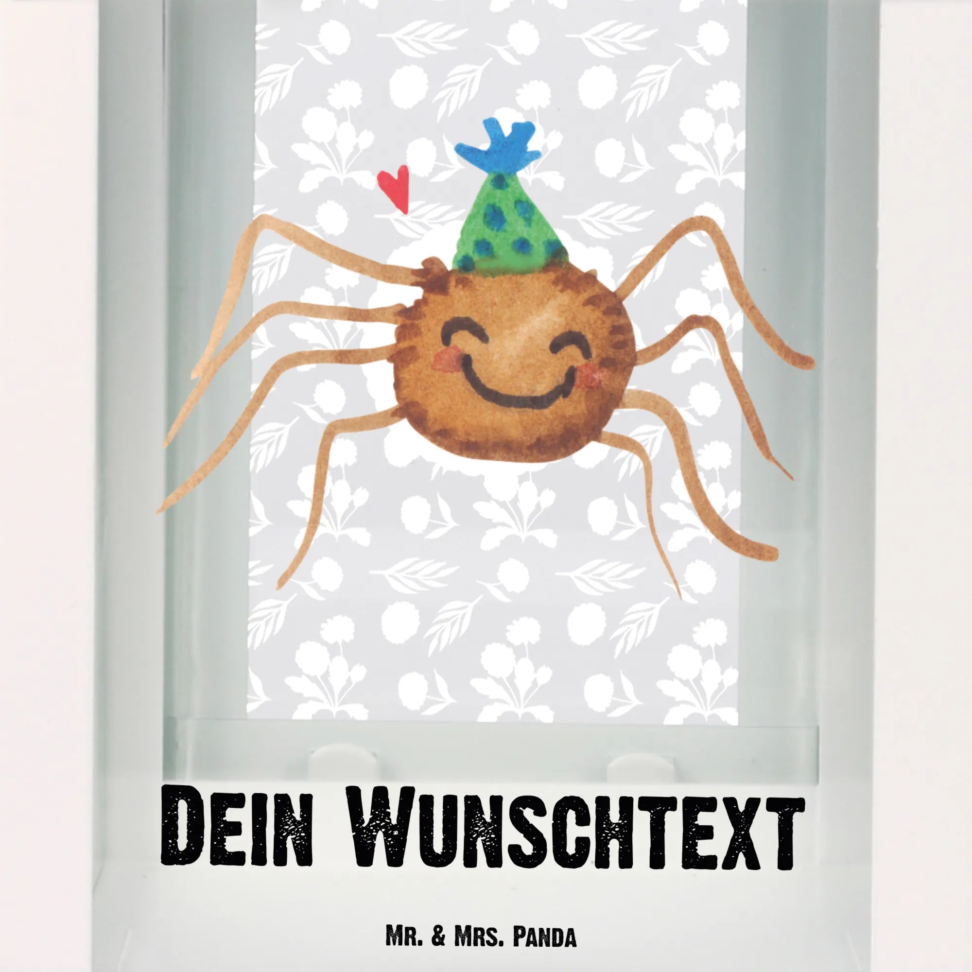 Entdecke die personalisierte Deko Laterne 'Spinne Agathe Party' aus der beliebten Kollektion von Mr. & Mrs. Panda! Diese charmante Laterne ist nicht nur ein wunderschönes Dekorationselement für deinen Garten, sondern vermittelt auch eine wichtige Botschaft: 'Du bist toll, so wie du bist. Du steckst voller kleiner und großer Wunder.' Die süße Spinne Agathe, die fröhlich in ihrem Partyhut strahlt, inspiriert dich und deine Lieben täglich zu mehr Lebensfreude und Selbstliebe.