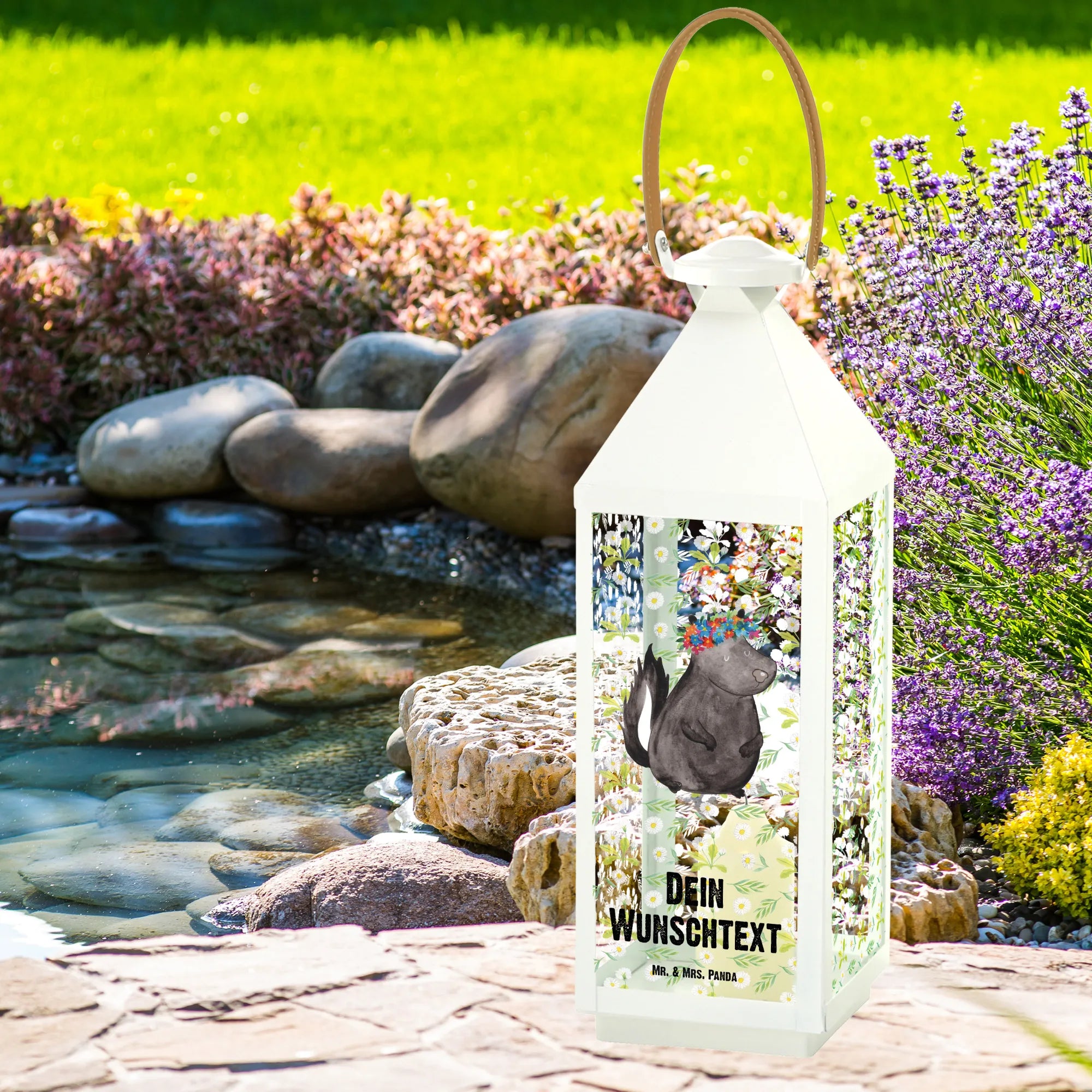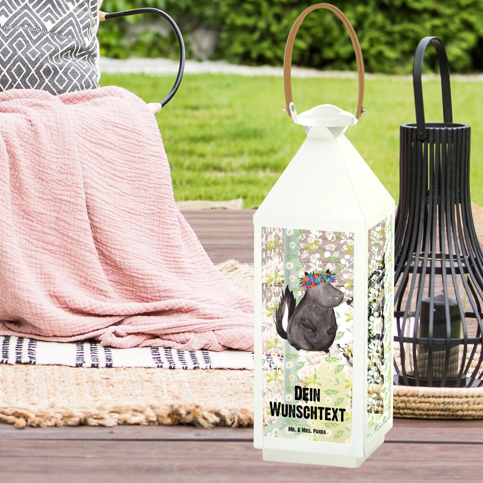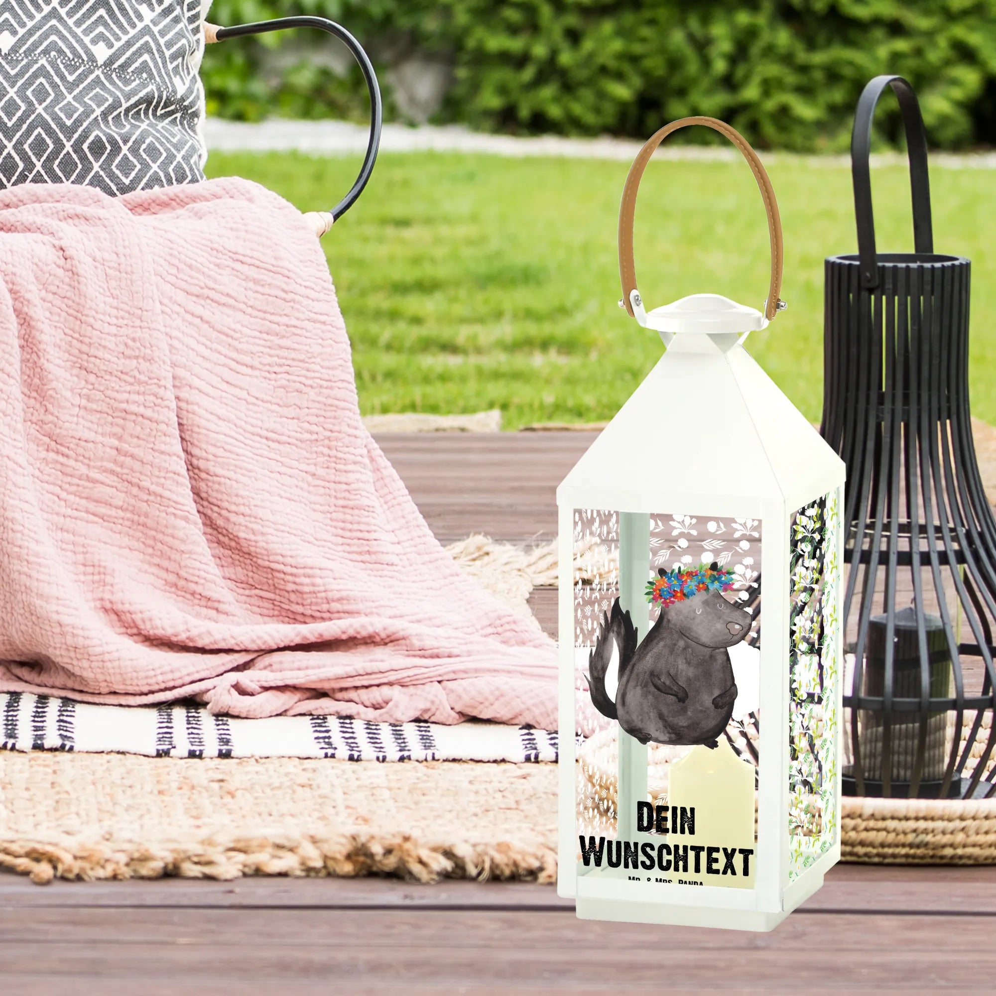 Personalisierte Deko Laterne Stinktier Blumenmaedchen - XL