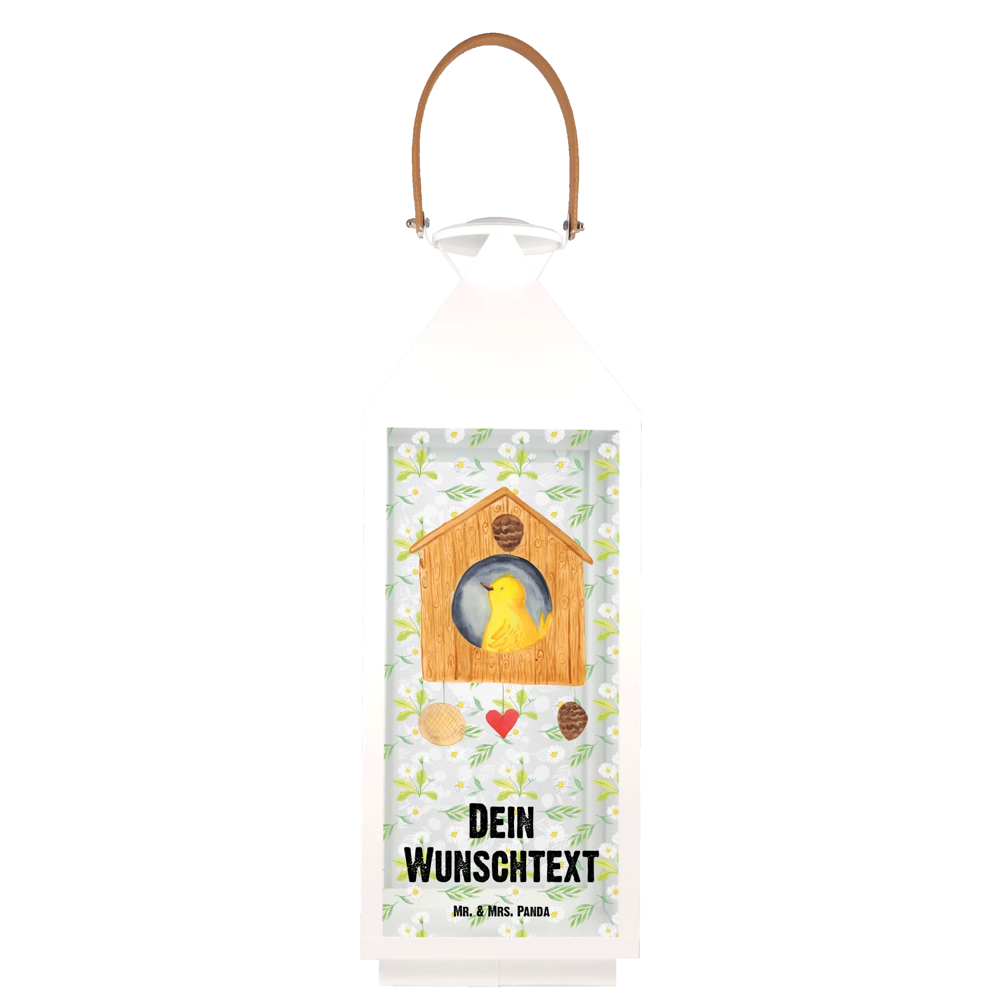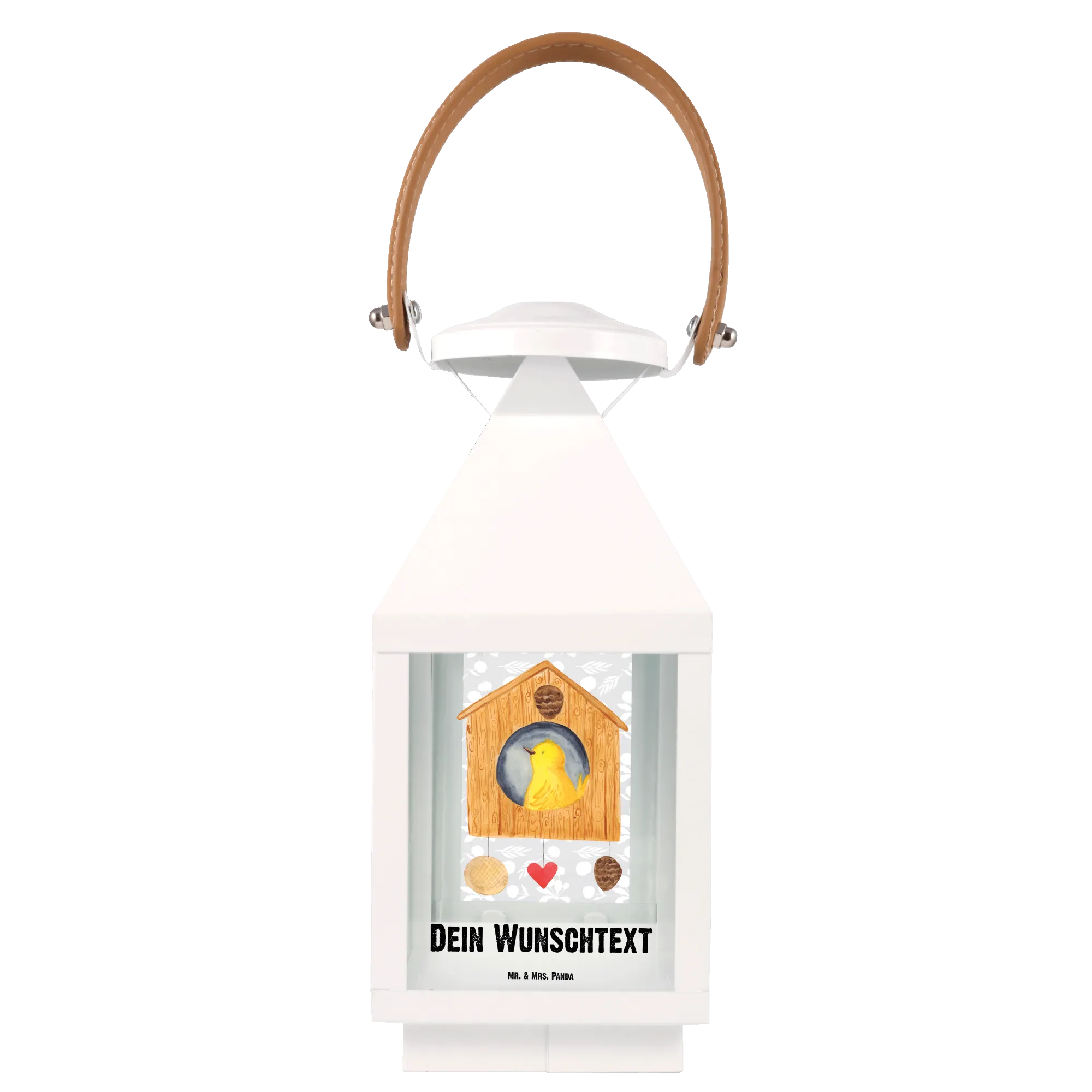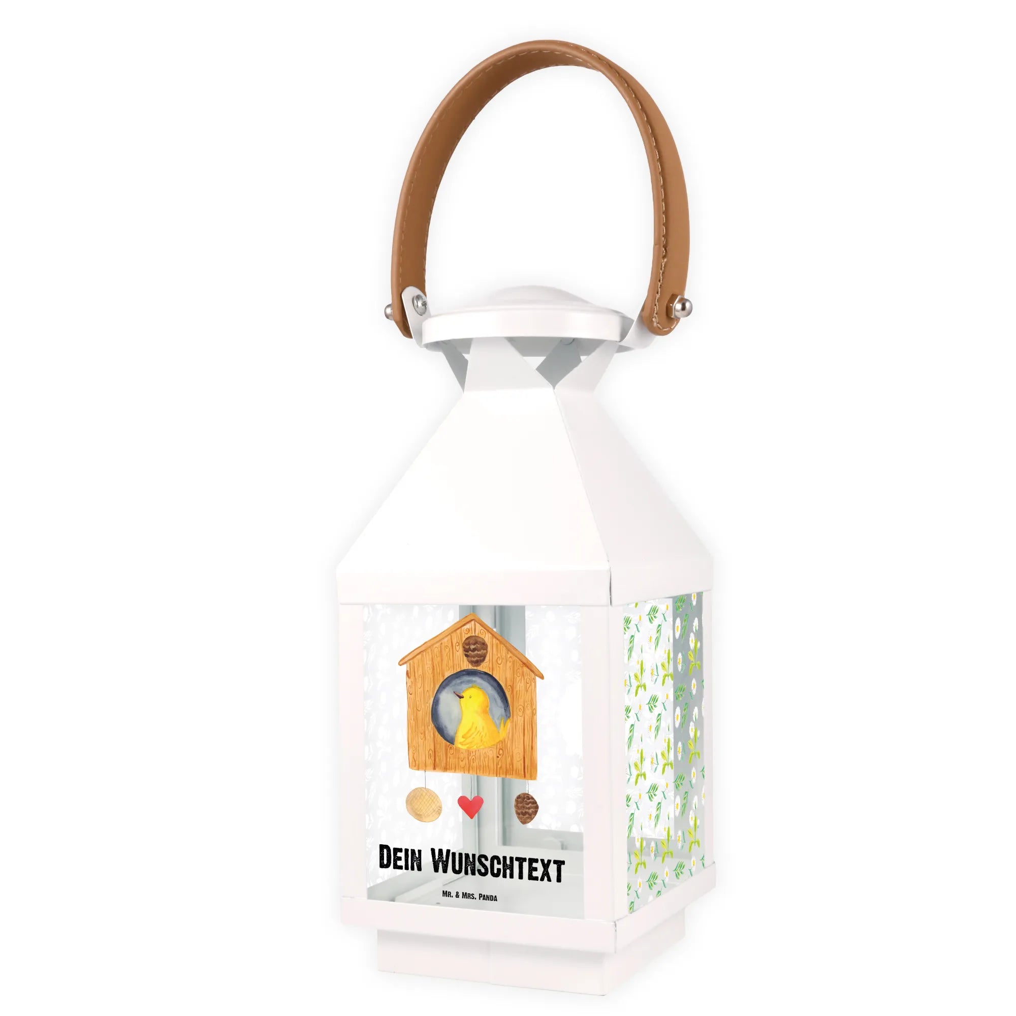 Entdecke die zauberhafte, personalisierte Deko Laterne mit dem liebevollen Motiv Vogelhaus aus der Small World Kollektion von Mr. & Mrs. Panda! Diese Laterne ist nicht nur ein Blickfang für jeden Garten oder Balkon, sondern auch eine einmalige Deko, die mit deinem ganz persönlichen Wunschnamen oder -text versehen werden kann.