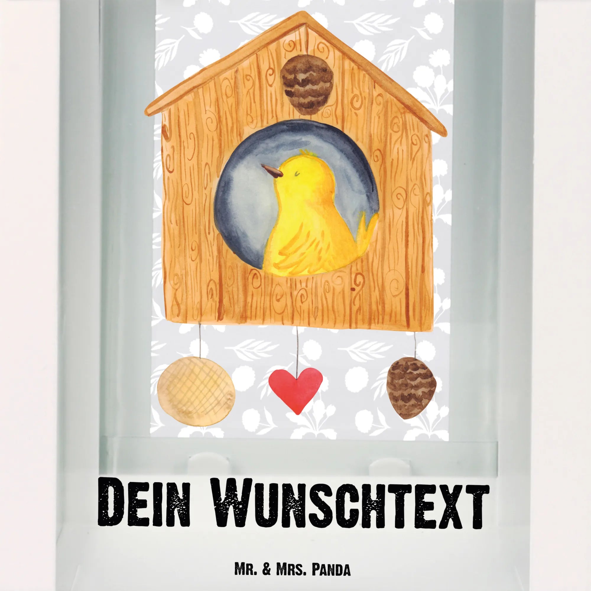 Gelber Vogel im Vogelhaus - Eigenheim Glück - Mr. & Mrs. Panda - Ideal für Familien und Nestbauer