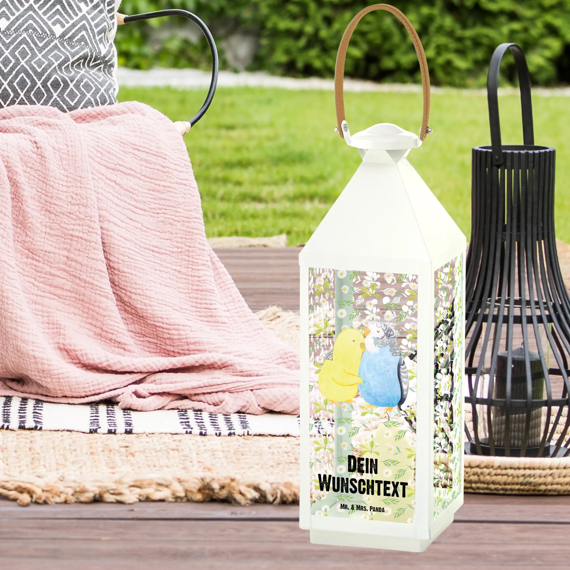 Personalisierte Deko Laterne Wellensittich Liebe – Mr. & Mrs. Panda