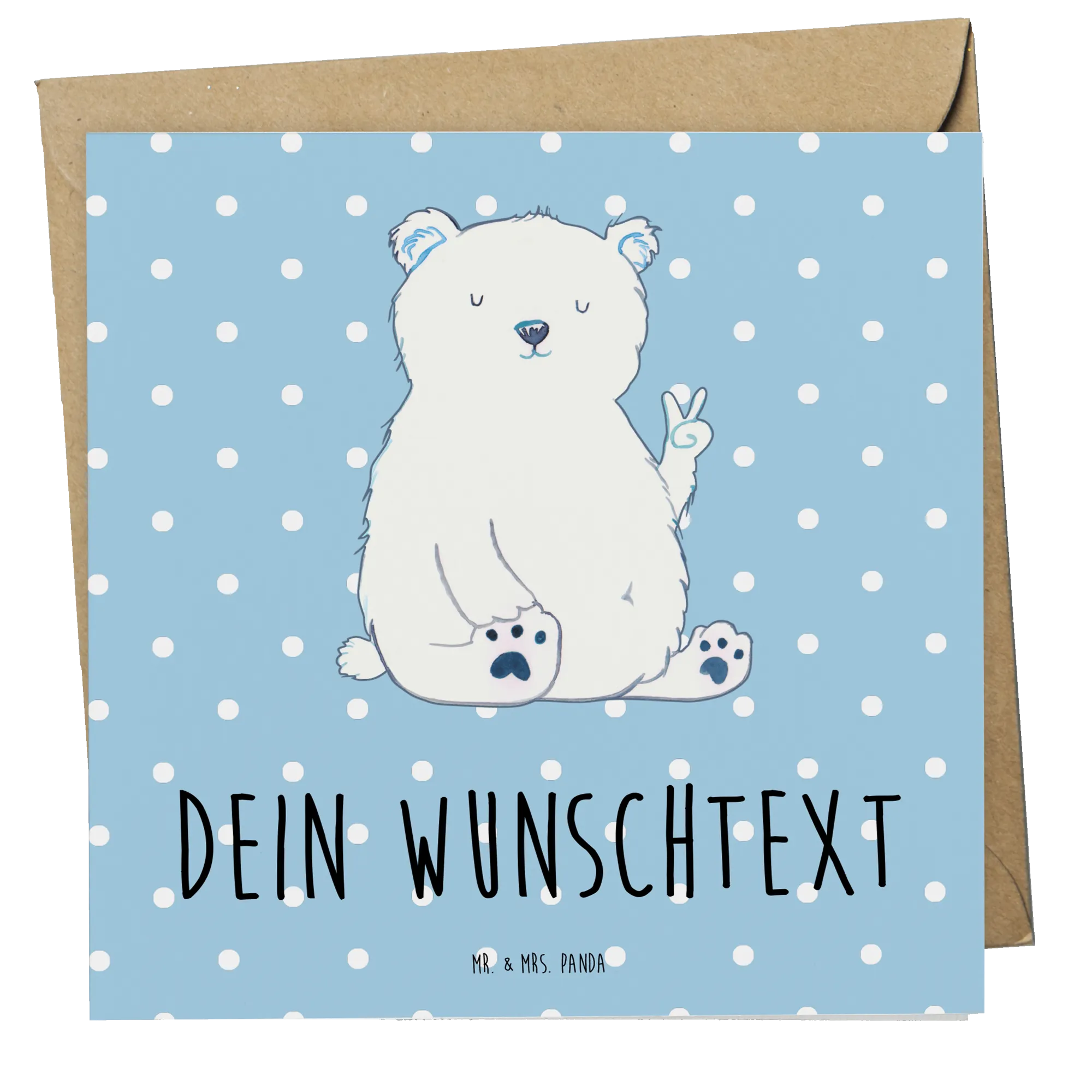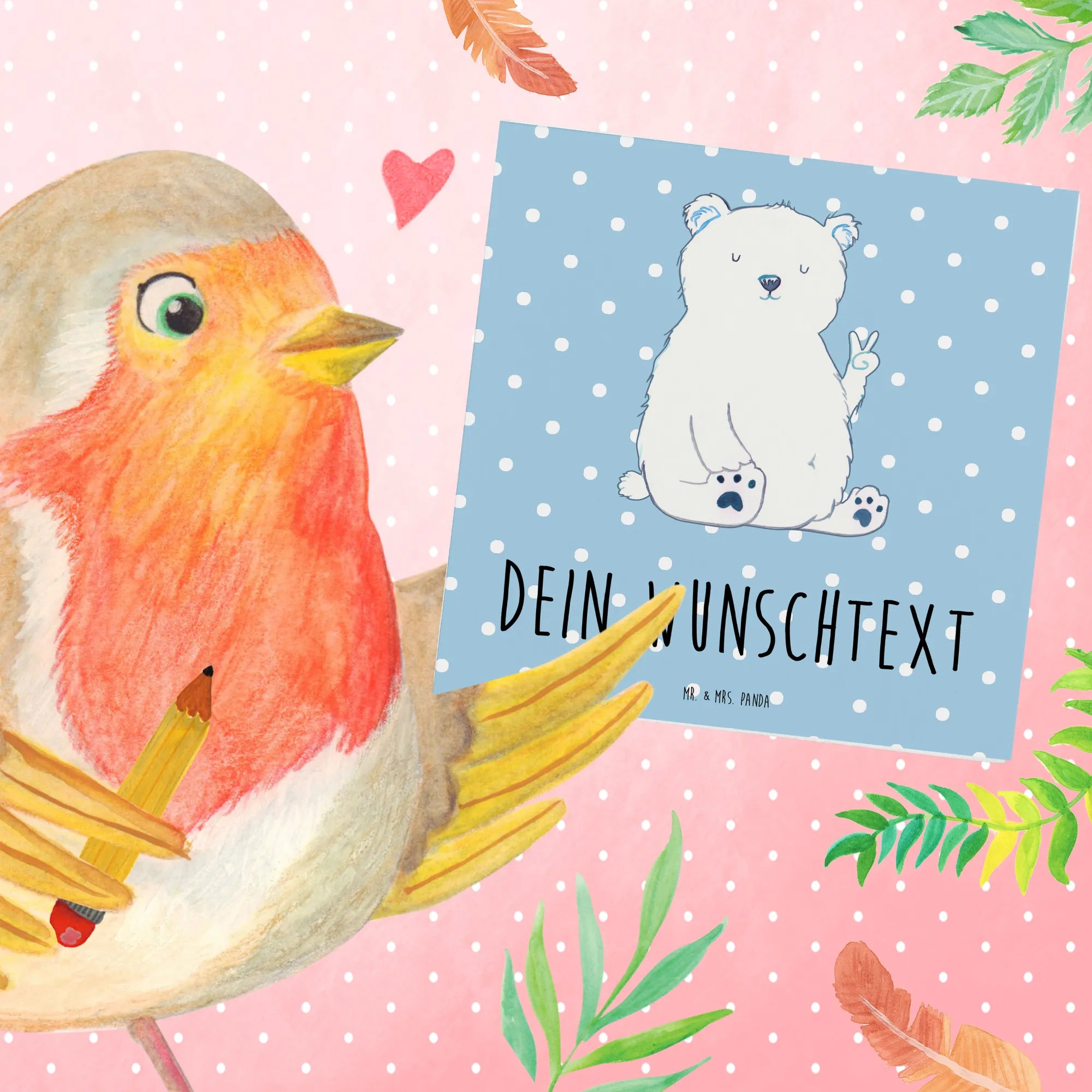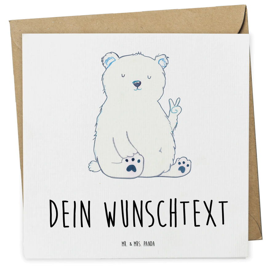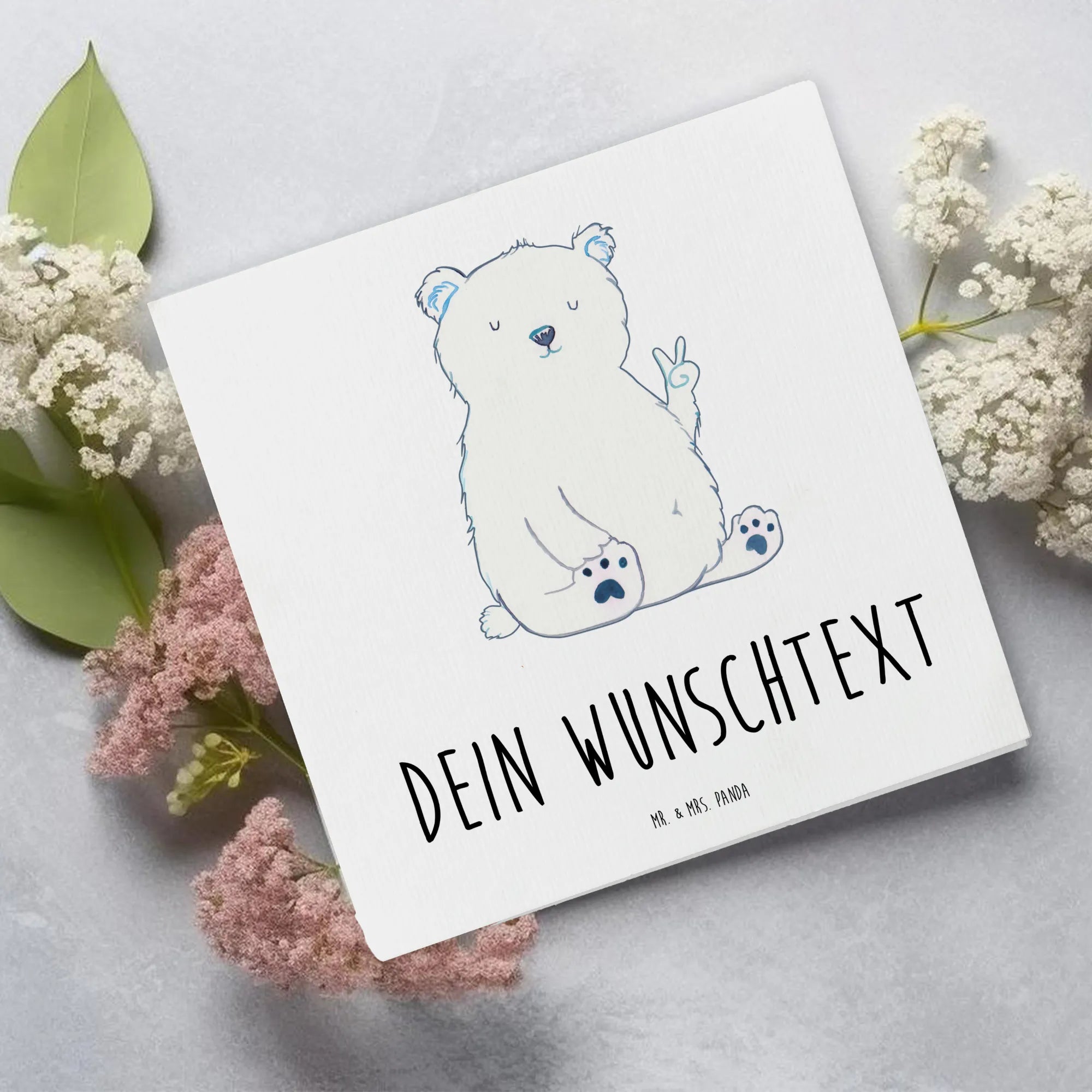 Die personalisierte Deluxe Karte mit dem süßen Motiv des faulen Eisbären von Mr. & Mrs. Panda ist das perfekte Geschenk für jeden, der das Entspannen und Relaxen liebt! Diese hochwertige quadratische Karte misst 140 mm x 140 mm und besteht aus edlem 300 Gramm Karton, der sowohl hochglänzend auf der Vorder- und Rückseite als auch matt auf der Innenseite ist. Dadurch kannst du die Karte ganz einfach mit Deinen persönlichen Nachrichten beschriften.