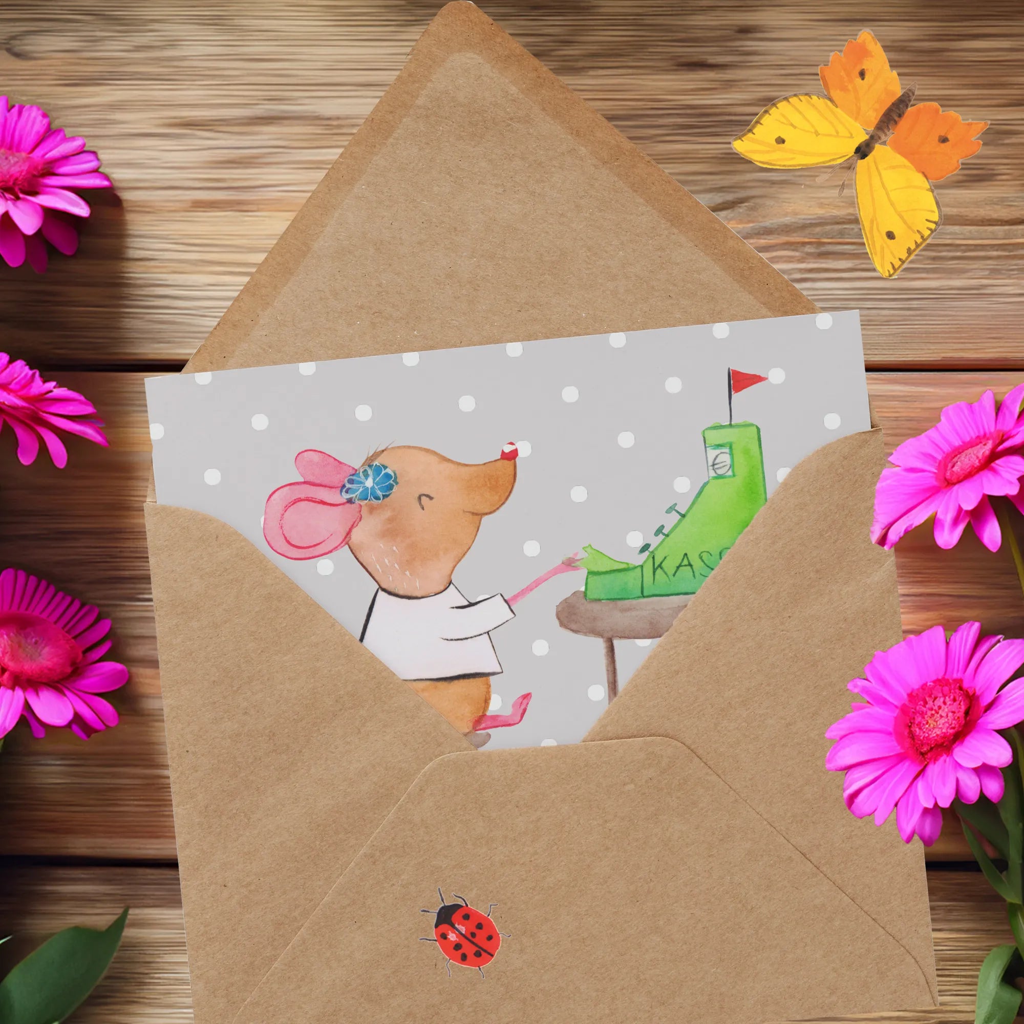 Diese Karte ist nicht nur ein echter Hingucker mit ihrem süßen Motiv einer kleinen, fleißigen Maus, sondern vermittelt auch eine herzliche Botschaft. Egal, ob zum Jobbeginn, zur Beförderung, zum Jubiläum oder als kleine Aufmerksamkeit im Ruhestand, diese Karte sorgt immer für ein Lächeln! Mit dem witzigen Spruch "Du bist nur ein halber Mensch, wenn du keine Kassiererin bist" wird die Botschaft ganz klar: Auch kleine Berufe sind wichtig und verdienen Anerkennung.