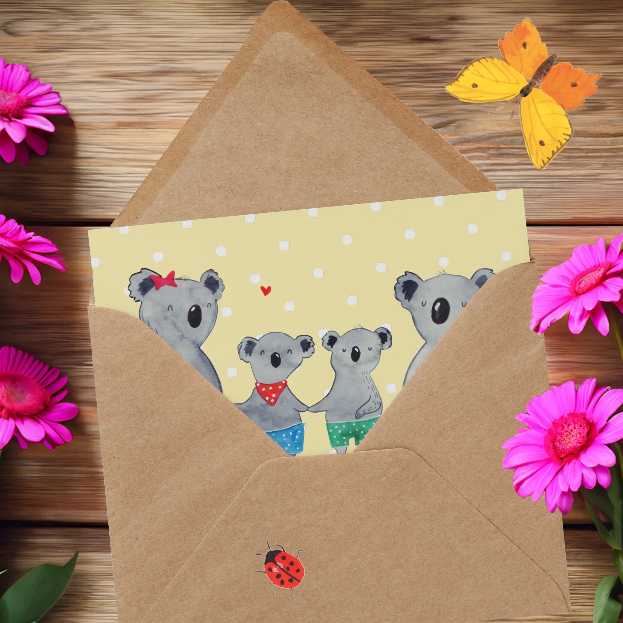 Personalisierte Deluxe Karte Koala Familie zwei - Gelb Pastell