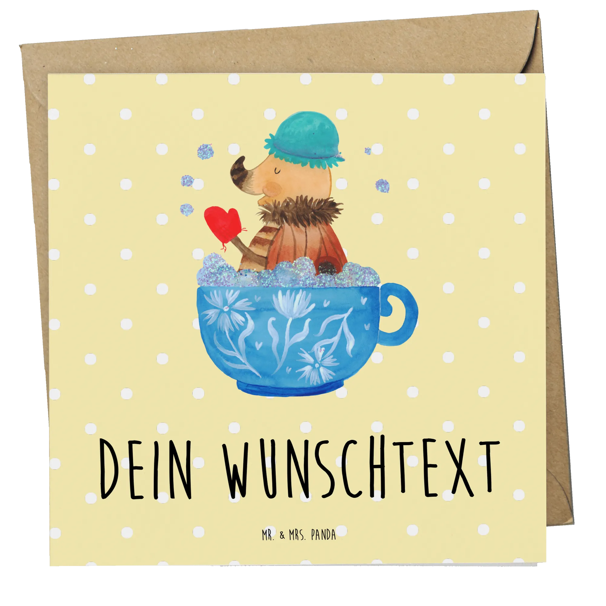 Herzlich Willkommen in der zauberhaften Welt von Mr. & Mrs. Panda! Unsere personalisierte Deluxe Karte mit dem süßen Motiv des Nachtfalters im Schaumbad ist der perfekte Weg, um deine besonderen Grüße oder Glückwünsche zu übermitteln.