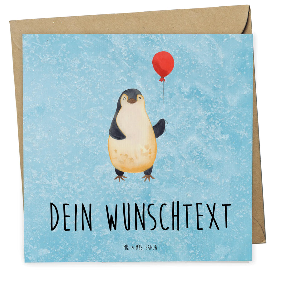 Personalisierte Deluxe Karte Pinguin Luftballon - Eisblau