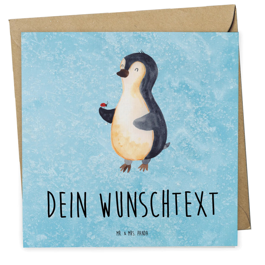 Personalisierte Deluxe Karte Pinguin Marienkäfer - Eisblau