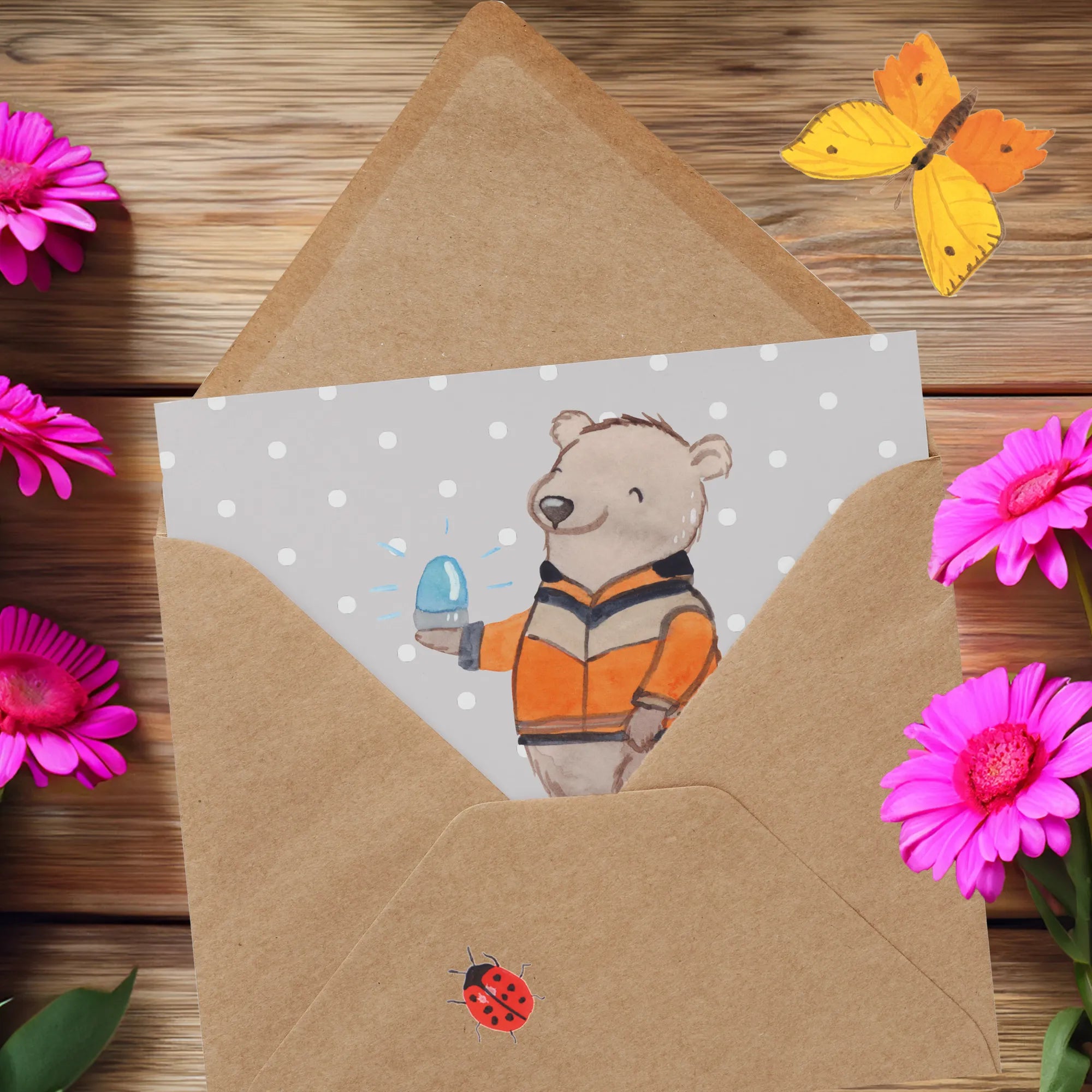Zudem kannst du die Karte ganz nach deinem Wunsch mit einem Namen oder einem persönlichen Text versehen, um das Geschenk noch individueller zu gestalten. Der süße Bär, der als Rettungssanitäter mit Blaulicht auf der Hand abgebildet ist, macht das Design der Karte besonders ansprechend.