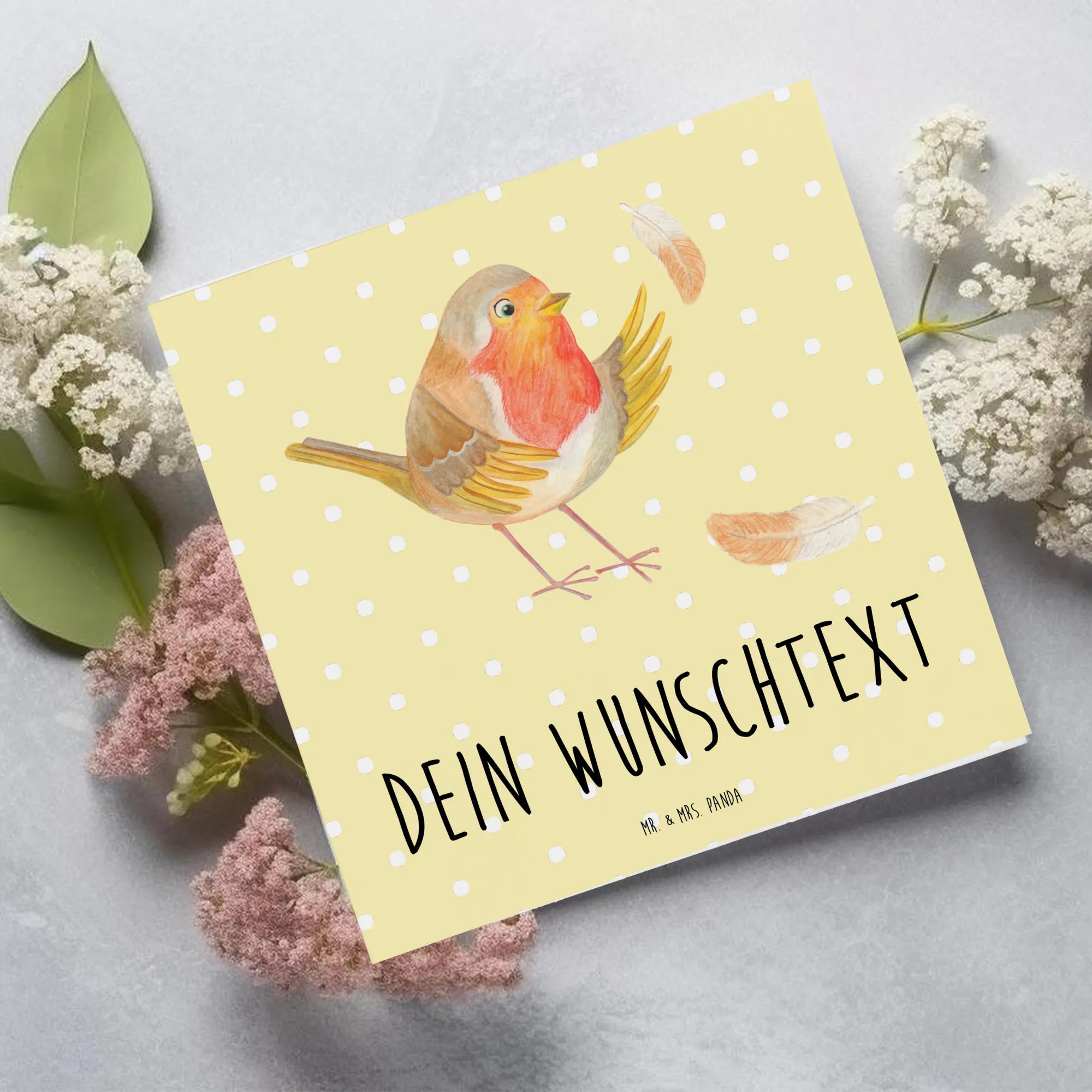 Die personalisierte Deluxe Karte mit dem süßen Rotkehlchen und bunten Federn ist das perfekte Geschenk für Freunde, Familie oder ganz besondere Anlässe. Egal, ob für einen Geburtstag, eine Hochzeit oder einfach nur so, mit dieser Karte bringst du Freude ins Leben deiner Liebsten.